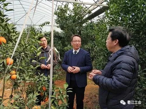 ▲徐惠文一行来到浙江省劳动模范余耀飞的柑橘农场,详细了解柑橘品种、栽培技术、市场经营情况,希望他能够持续秉承劳模精神,为衢江农业发展做出贡献。