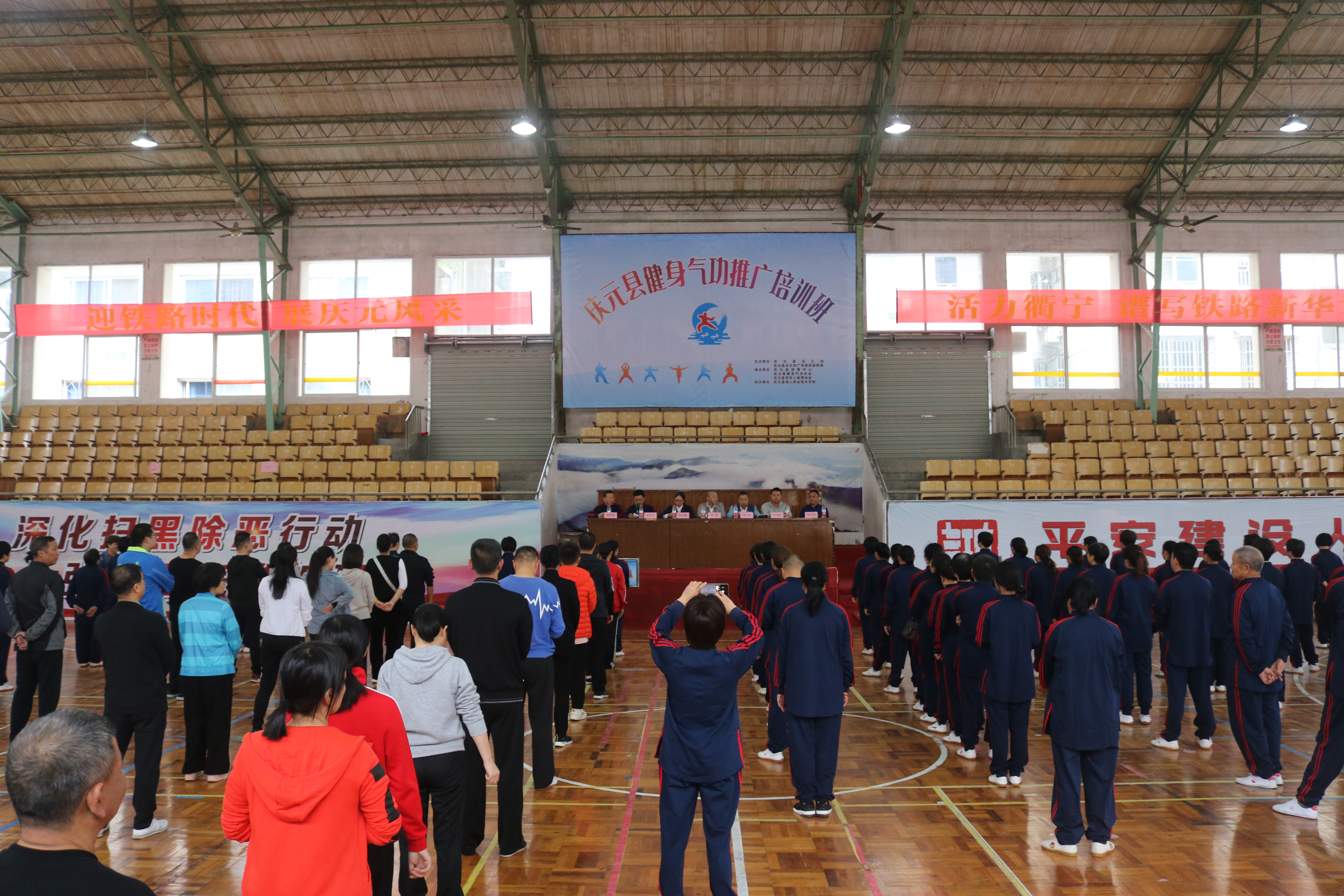 为不断满足广大职工日益增长的多元化健身需求,进一步推广和普及健身气功的运动方式,促进职工身心健康,10月17—18日,庆元县总工会、庆元县文化和广电旅游体育局在县体育中心联合举办了全县健身气功推广培训班,来自全县各乡镇(街道)、机关事业单位的干部职工和县健身气功协会会员150多人参加了培训。庆元县人大常委会副主任叶武、丽水市健身气功协会会长李勇波出席开班仪式并参加培训活动。