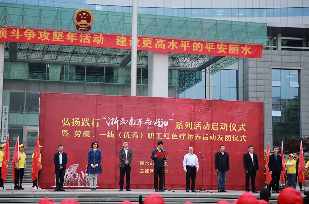 本次活动既是红色疗休养的发团式,也是市总工会弘扬践行“浙西南革命精神”系列活动的启动仪式。除此,“五一”国际劳动节期间,市总工会还将组织开展一场“五一”国际劳动节庆祝大会、一场职工红色经典诵读会、一次劳模先进集中宣传、一项全市职工气排球联赛等活动,团结引领全市广大职工高举“劳动光荣、创造伟大”精神旗帜,大力弘扬劳模精神、劳动精神,进一步扛起以“丽水之干”担纲“丽水之赞”的政治担当。