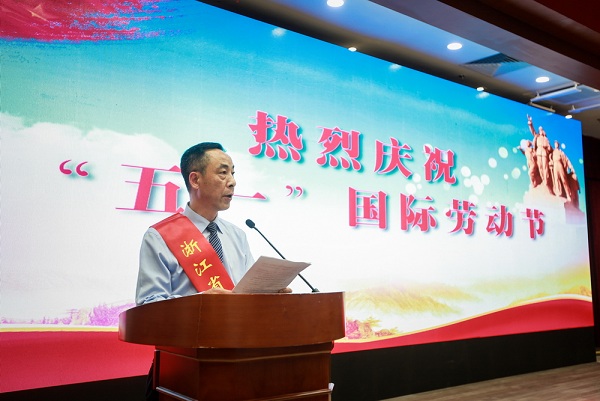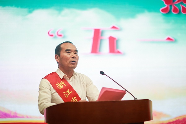 浙江省模范集体代表、丽水市行政审批服务管理办公室和浙江省劳动模范代表、景宁畲族自治县鹤溪街道三枝树村党支部书记张小宝同志分别代表模范集体和劳动模范发言。浙江晨龙锯床股份有限公司董事长兼研发中心主任丁泽林同志代表我市劳模宣读了《倡议书》,号召全市广大劳动者要争当新思想的践行者、新时代的建设者、新使命的奋斗者和新征程的开拓者,为加快推进丽水高质量绿色发展注入新动能,创造新辉煌。