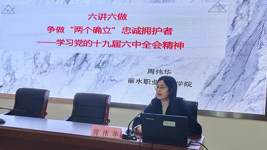 为全面准确、系统深入学习宣传贯彻党的十九届六中全会精神,深化党史学习教育,从党的百年奋斗重大成就和历史经验中汲取奋进力量,走好新的赶考之路。12月4日上午开发区总工会、开发区机关党委、开发区企业党委在党群活动中心联合举办经开区学习党的十九届六中全会精神专题宣讲培训班暨100名宣讲员进机关进企业进村社进家庭活动,经开区党群工作部副部长、总工会主席李俊霞,经开区党群工作部副部长、机关党委专职副书记、两新工委书记周爱平,丽水职业技术学院机电工程学院党总支书记周伟华出席会议。会议由经开区企业党委副书记、总工会副主席邓国伟主持。