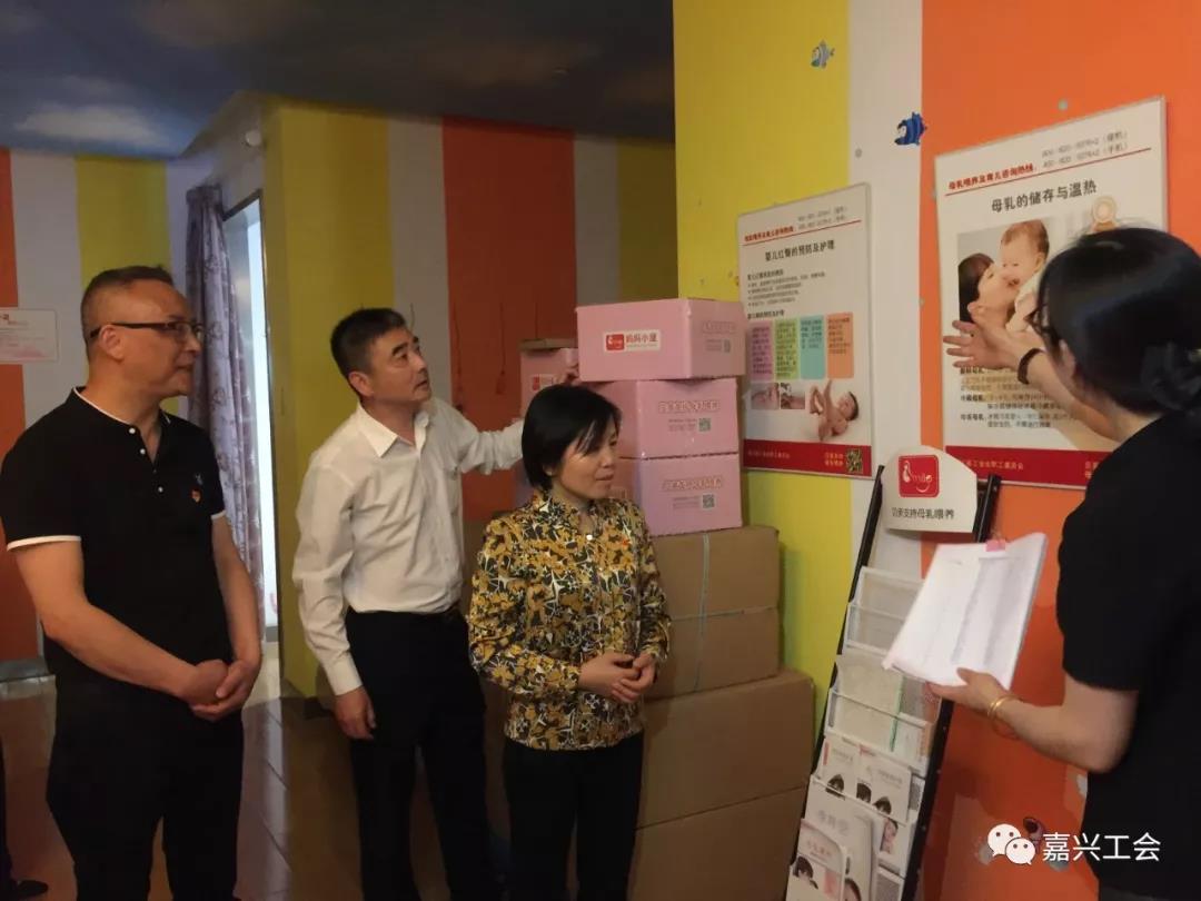 5月28日,嘉兴市总副主席、工会女职委主任高红慧和女职委副主任金风劼、市财贸工会主席李晨一行来到戴梦得购物中心,对妈咪暖心小屋规范化建设和维护作专项督查,并送去小屋物料。
