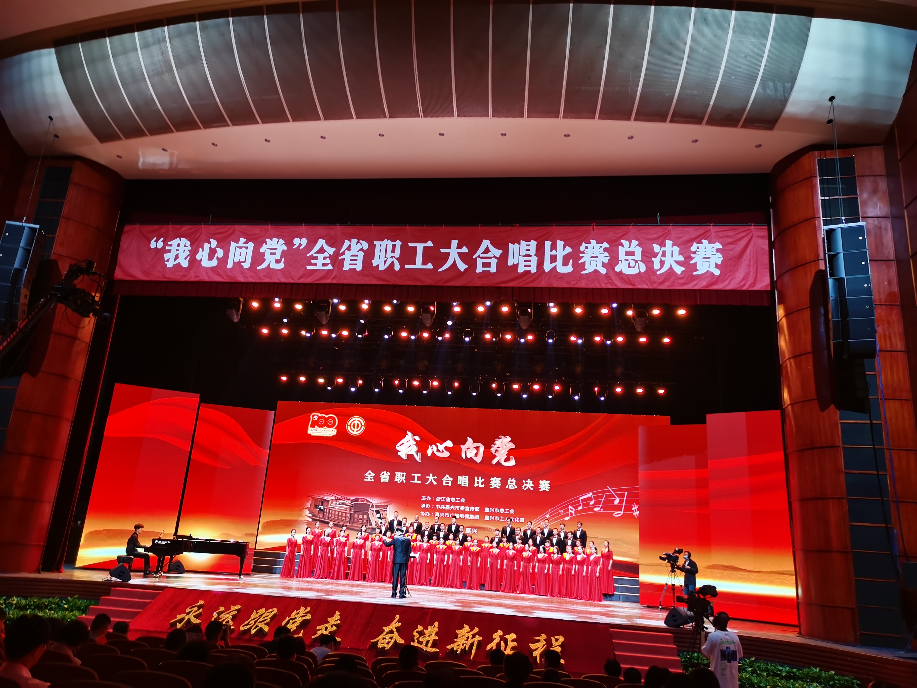 6月22日,由浙江省总工会主办的“我心向党”全省职工大合唱比赛总决赛在嘉兴举行。江山劳施豪合唱团在决赛中演唱了曲目《我相信梦可以像花一样开》《把一切献给党》,最终,凭借扎实的合唱功底和精彩的表现斩获比赛的银奖。