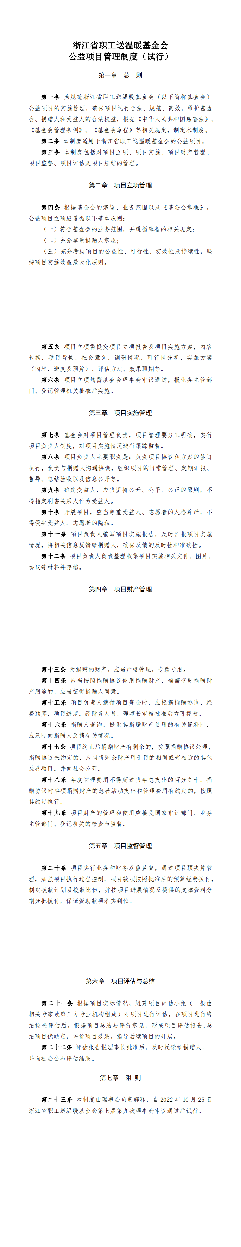 浙江省职工送温暖基金会公益项目管理制度(试行)