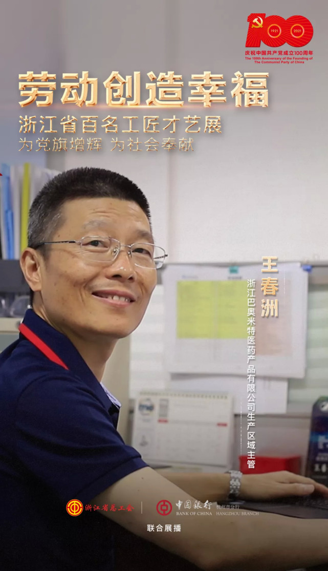 王春洲是生产VSM-Instruments/磨车区域主管,2004年2月加入巴奥米特医药产品有限公司,2009年参加金华市劳动竞赛获得“技术能手”称号并获得数控铣工高级工职业资格证书;2017年11月获得机械工程师职称,2018年9月获得铣工技师职业资格证书。