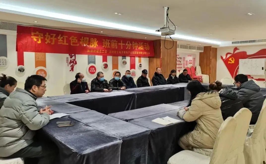 近日,温州坚士电子商务产业园发展有限公司总经理主持了“守好红色根脉·班前十分钟活动”。通过与职工沟通交流,广泛征求职工新一年对公司发展的建议,仔细倾听职工对自身岗位的规划,进一步调动职工工作积极性,促进企业更好发展。
