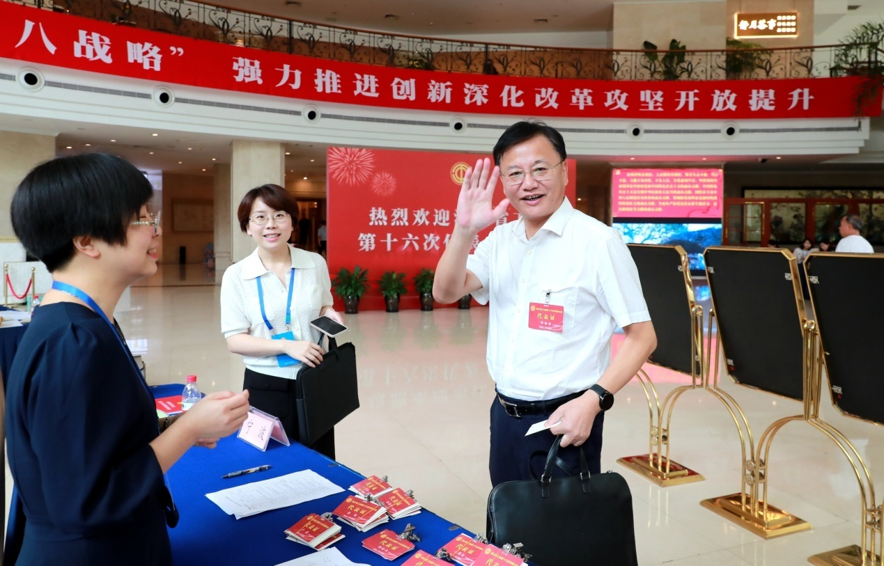 带着全省职工的信任与嘱托,昨日(7月23日)上午,出席省工会第十六次代表大会的代表陆续到各代表团驻地报到。胸前的代表证,是一份沉甸甸的责任。大家表示,要充分履行代表职责,共谋浙江工运事业和工会工作的崭新蓝图,团结带领全省广大职工坚定不移深入实施“八八战略”、奋力谱写共同富裕和中国式现代化浙江篇章。