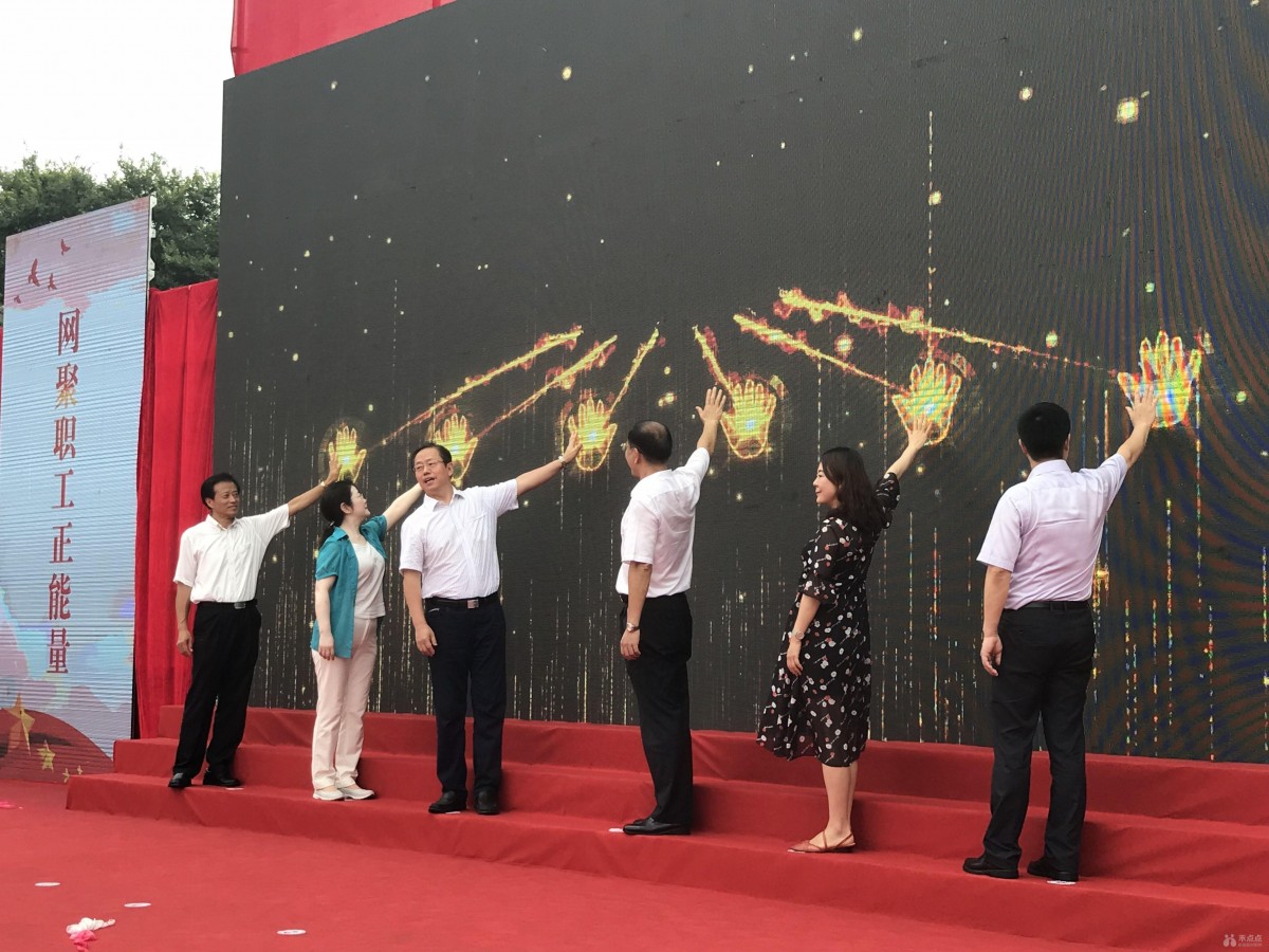 出席启动仪式的领导共同上台触动大屏,显示嘉兴市、浙江省、全国地图的LED大屏依次点亮,象征红船精神照亮全国工会系统。