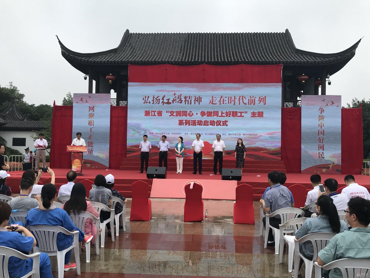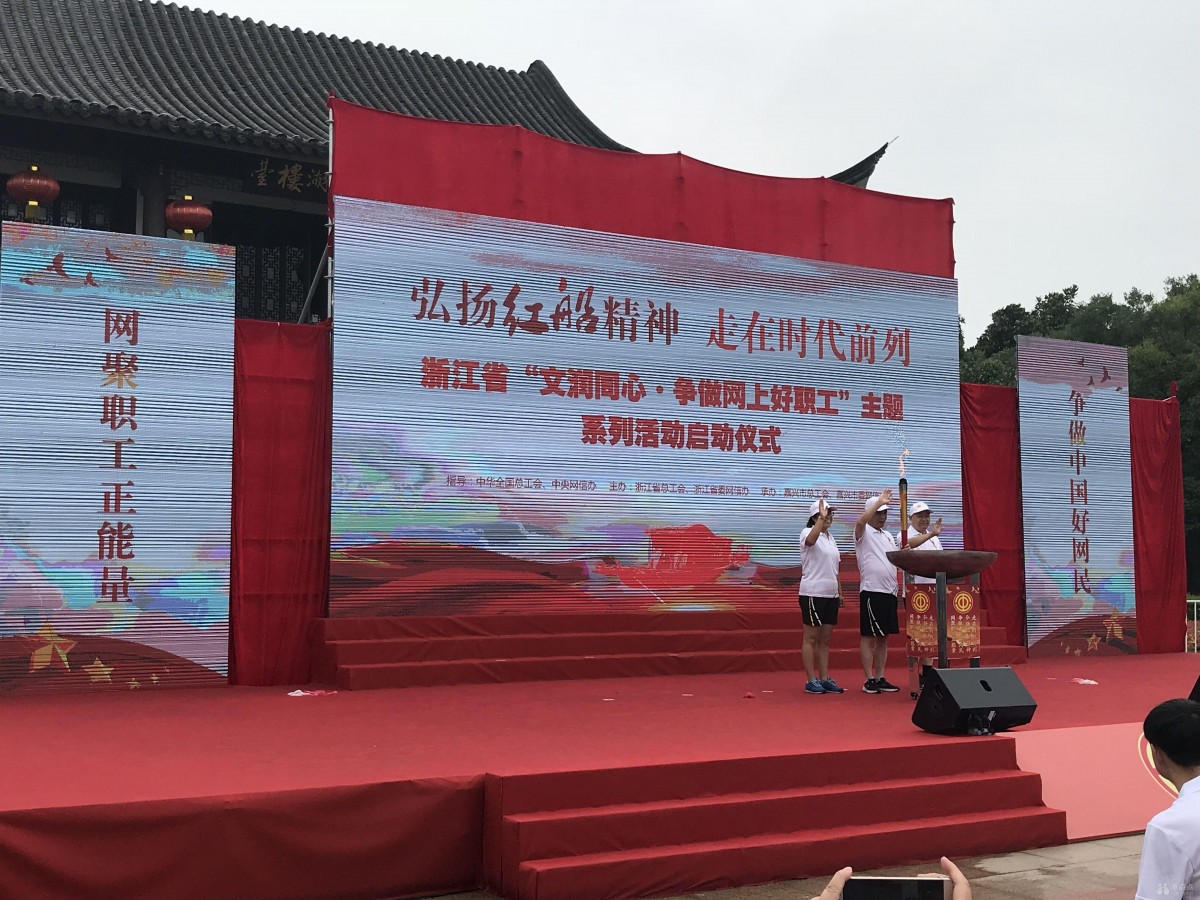 今天上午,浙江省“文润同心•争做网上好职工”主题系列活动启动仪式暨“弘扬红船精神 走在时代前列”火炬传递、基层接力活动在革命圣地美丽的嘉兴南湖畔正式开始!