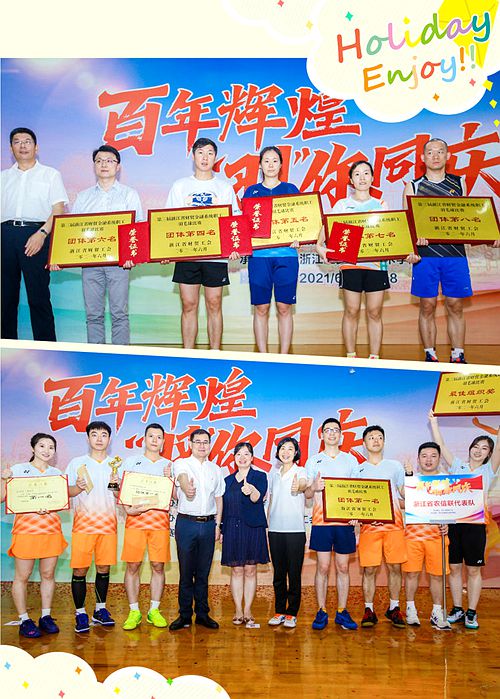 6月18日,“百年辉煌羽你同庆”第三届浙江省财贸金融系统职工羽毛球比赛在浙江经贸职业技术学院体育馆圆满落幕。此次比赛为期3天,分为男子单打、女子单打、混合双打、团体比赛四个项目,共有36支代表队伍,近300名运动员参加了此次比赛。