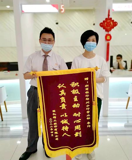 疫情解封后第一日,郑州分行营业部收到客户送来的锦旗,专门向营业部柜面前期提供的高效贴心服务表达感谢。