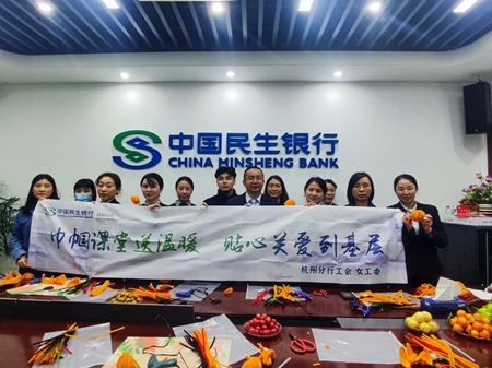 近日,中国民生银行杭州分行开展“巾帼课堂送温暖”服务基层系列活动之绒布石榴灯笼制作活动,来自朝晖支行、城东支行、城北支行的近20位女员工现场参加。