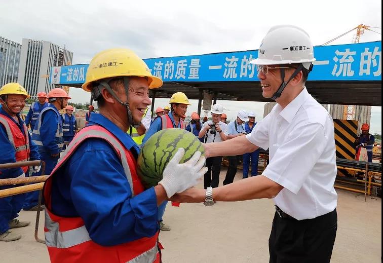 史济锡说,高温酷暑季节向一线职工“送清凉”是工会一直以来保持的传统。今年夏天除了高温,还经历了持续的梅雨天气以及常态化开展新冠肺炎疫情防控等叠加在一起的特殊情况,给工程建设带来了一系列的挑战。史济锡说,之江文化中心是浙江打造文化强省的重要支撑项目、标志项目,广大建设者辛苦流汗,积极工作,为打造浙江重要文化窗口作出了贡献。