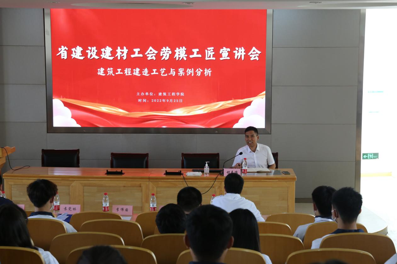 “各位同学,大家还处在刚起步学习的过程,这里用我实际操作过的案例和经验与大家一起交流.....”活动现场,程泰德用深入浅出的话语为同学们带来了《建筑工程建造工艺与案例分析》专题讲座,并用亲身经历鼓励大家,“作为一个建设人,除了要学好技术,更重要的是锤炼出一颗踏实肯干、精益求精的匠心,这是大家将来实现梦想的秘诀。”