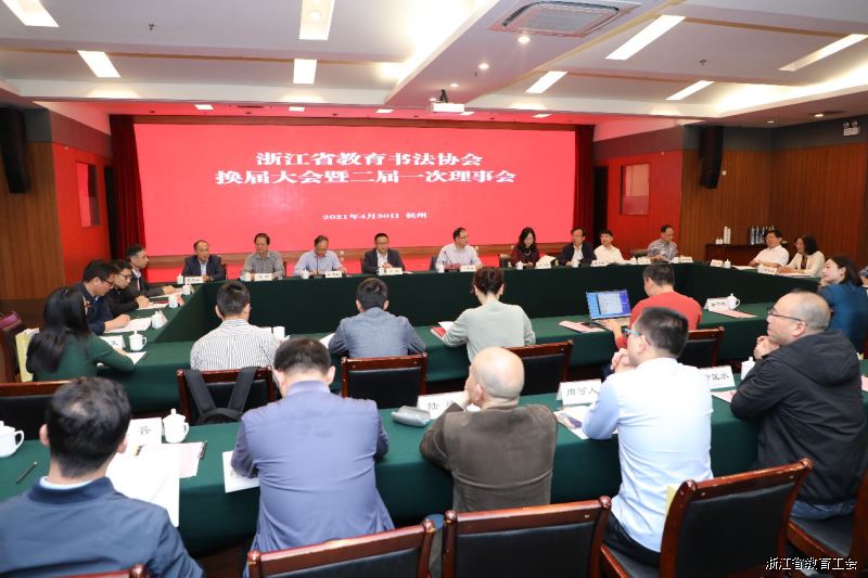 4月30日,浙江省教育书法协会换届大会暨二届一次理事会在浙江金融职业学院召开。省总工会二级巡视员,省教育工会主席王玉庆出席大会并讲话。浙江金融职业学院院长郑亚莉出席大会并致辞,省教育工会副主席徐立,协会会长、浙江财经大学党委副书记黄建新,叶舟、张元龙等协会及高校领导出席大会。协会常务副会长茹惠祥主持大会。协会副会长、秘书长及协会第二届常务理事候选人等出席大会。