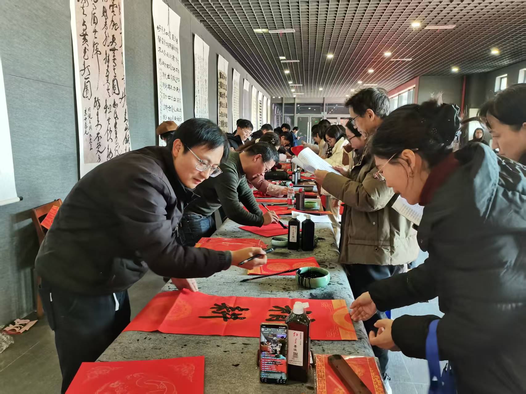 在活动期间,各学校领导、书法艺术家等纷纷出席有关单位活动,现场泼墨,为学校教职工书写“福”字和春联,以满满的热情,为他们送上新年的祝福。广大教职工踊跃求字,收得一份纯真、美好的祝福 ,洋溢出甜美的笑容。活动现场气氛热烈,饱含浓浓的文化气息,展现新年一派和谐、幸福、欢乐的气象。
