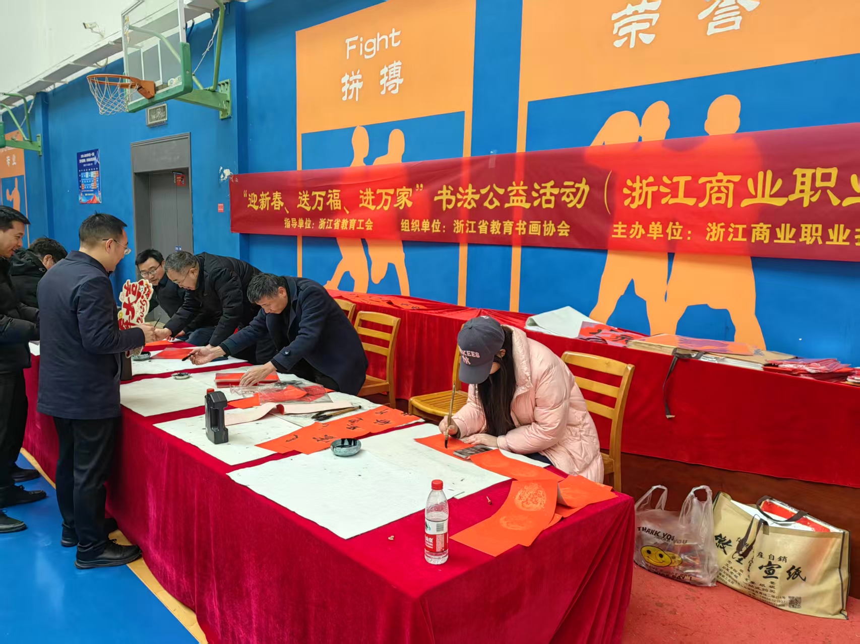 2026年丙午新春将至,浓浓的过节气氛已悄然而至,美好的祝福不时在耳边响起。在这个美好的时节里,为大力弘扬中华优秀传统文化,丰富广大教职工精神文化生活,以饱满的热情迎接新一年的到来。浙江省教育书画协会在浙江省教育工会的领导下,于2026年1月上旬开始陆续在全省范围内发起,组织举办“迎新春,送万福,进万家”书法公益活动。浙江师范大学、宁波大学、浙江财经大学、浙江中医药大学、杭州电子科技大学、浙江农林大学、浙江传媒学院、浙江农林大学、嘉兴大学、浙江开放大学、浙江药科职业大学、浙江金融职业学院、浙江经贸职业技术学院、浙江商业职业技术学院、浙江旅游职业学院、宁波鄞州中学等十余所学校已在不同时段举办该项活动,参与师生达数万人。