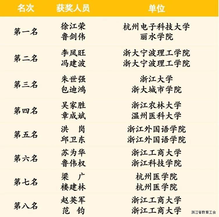 2020年浙江省高校“校长杯”羽毛球双打比赛获奖名单