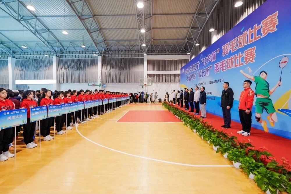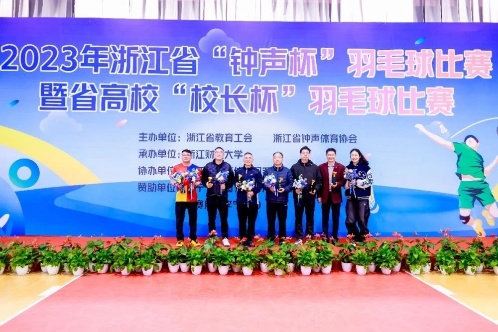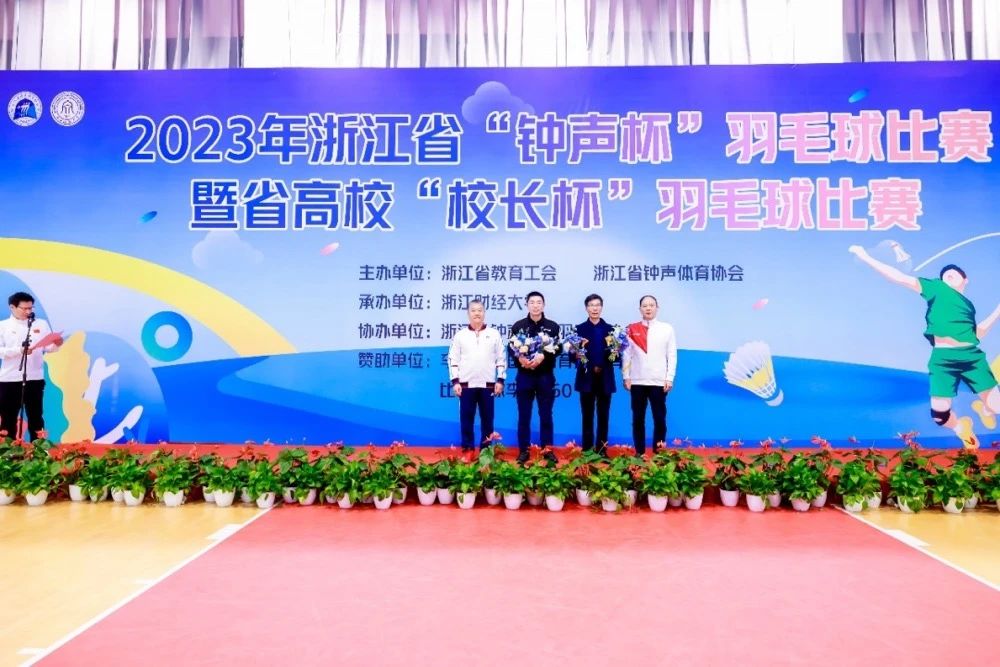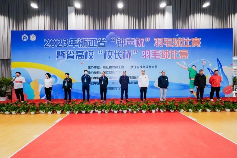 11月29日-12月2日,2023年浙江省“钟声杯”羽毛球比赛暨省高校“校长杯”羽毛球比赛在浙江财经大学东体育馆顺利举行。省教育工会主席、省钟声体协主席王玉庆,浙江财经大学党委书记李金昌,有关参赛高校领导王兴杰、陈建孟、马志和,省钟声体协副主席葛海平、党颖、李训茂参加了活动。王玉庆宣布比赛开幕。