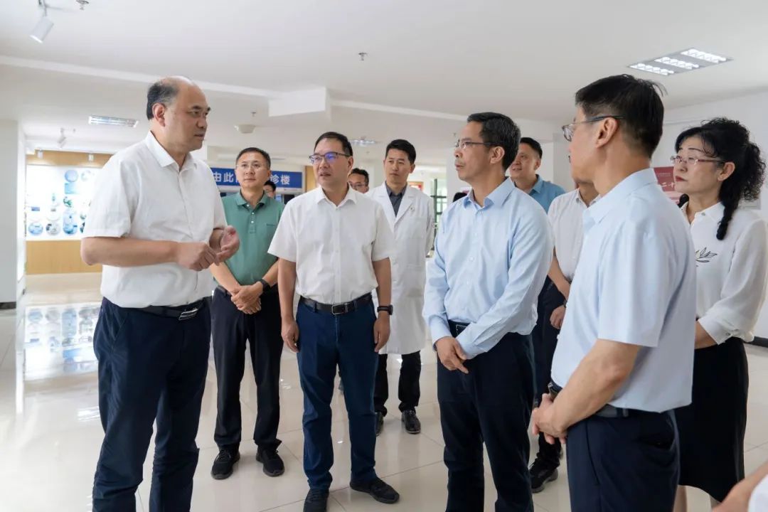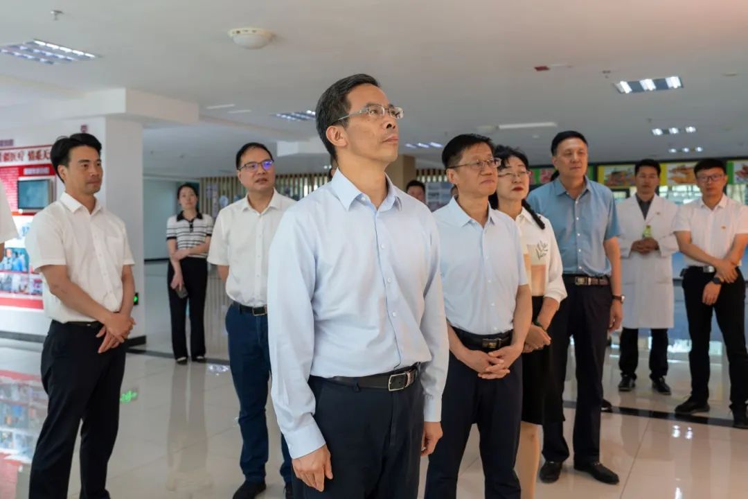 在医院党委书记王志强和副书记、院长张雷等的陪同下,吕志良一行参观了医院院史文化长廊,深入了解了医院60余年的发展历程、重点学科发展、人才梯队建设、文化内涵建设等情况,对浙大邵逸夫阿拉尔医院立足南疆、建设标杆式国家区域医疗中心的发展方针以及积极推动“1+5+N”医疗服务新体系作出的努力予以了充分的肯定与赞扬。