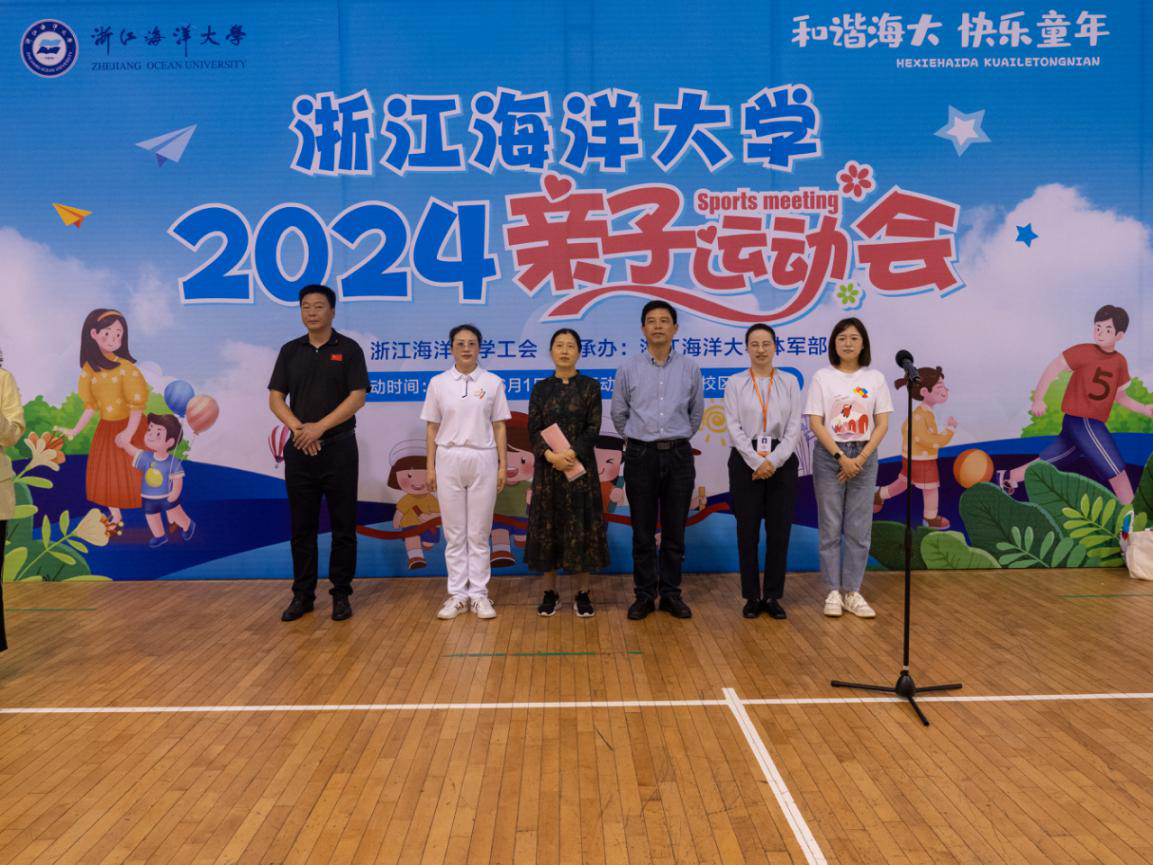 2024年6月1日上午,“和谐海大 快乐童年”2024年浙江海洋大学亲子运动会在新城校区体育馆举行。本次活动由浙江海洋大学工会主办、浙江海洋大学体军部工会承办,浙商银行和宁波银行赞助,一共192名1-14周岁教职工子女参加了活动。亲子运动会由体军部工会主席、体军部副主任卢海英主持,校工会兼职副主席虞浩臣宣布开幕式开始,校工会副主席应军致开幕辞,校工会文体委主任、体军部副主任王裕桂、工会文体委员、本届亲子运动会裁判长高若沉、宁波银行定海支行财富部总经理陈琳琳、浙商银行舟山分行零售部副总经理毛燕超等参加并为获奖小朋友颁奖。