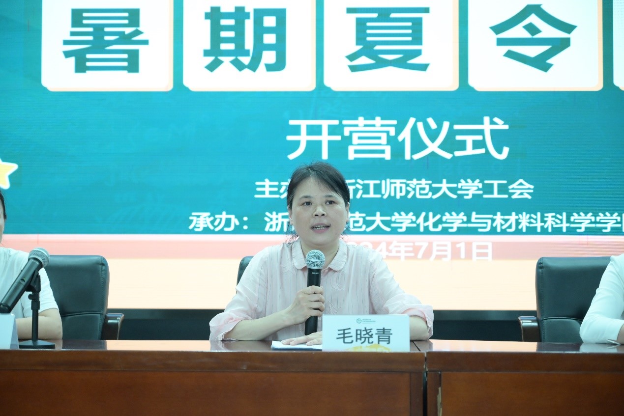 谢枝文对课程安排及日常管理作介绍。她表示,作为承办单位,化材学院一定会全力以赴做好组织管理工作,不辜负校工会的信任、教职工的重托,努力以热心、细心、暖心的服务,为夏令营的圆满成功提供坚强保障。