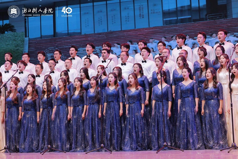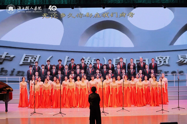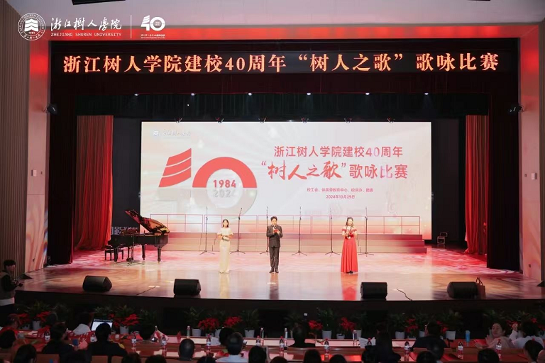 金秋送爽,万里山河披锦绣;砥砺奋进,四秩树人颂华章。近日,浙江树人学院杨汛桥校区李常盛礼堂人头攒动,800余名师生欢聚一堂,用嘹亮的歌声为即将到来的建校40周年生日献上祝福。本次歌咏比赛由校工会、体美劳教育中心、校庆办、校团委共同组织,共有11支合唱参赛队,学校领导李鲁、章清、王军、陈新民、叶时平、陆桂芹、陈浚、冯淑娟和各机关职能处室融入到其所联系的学院参赛队伍中。