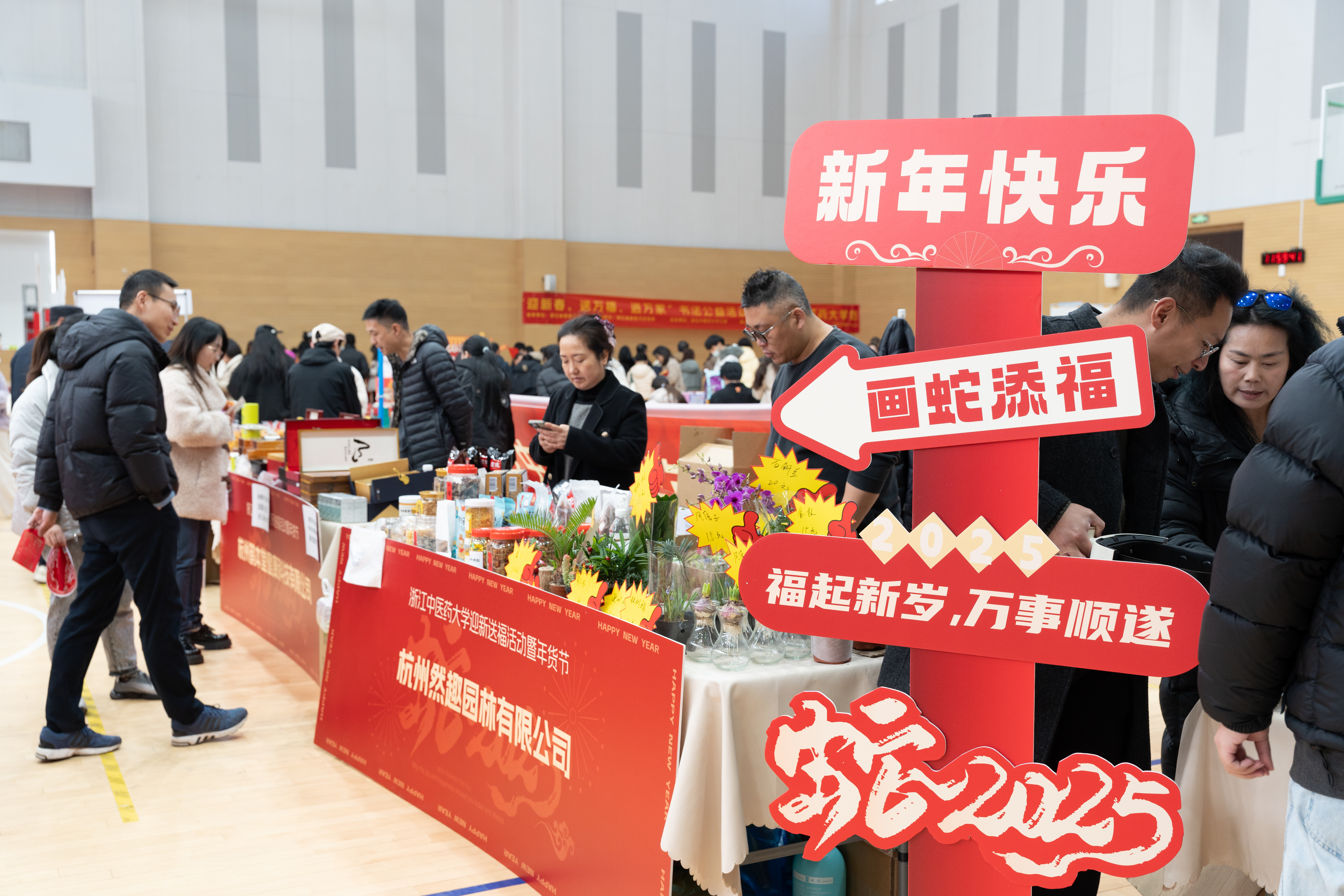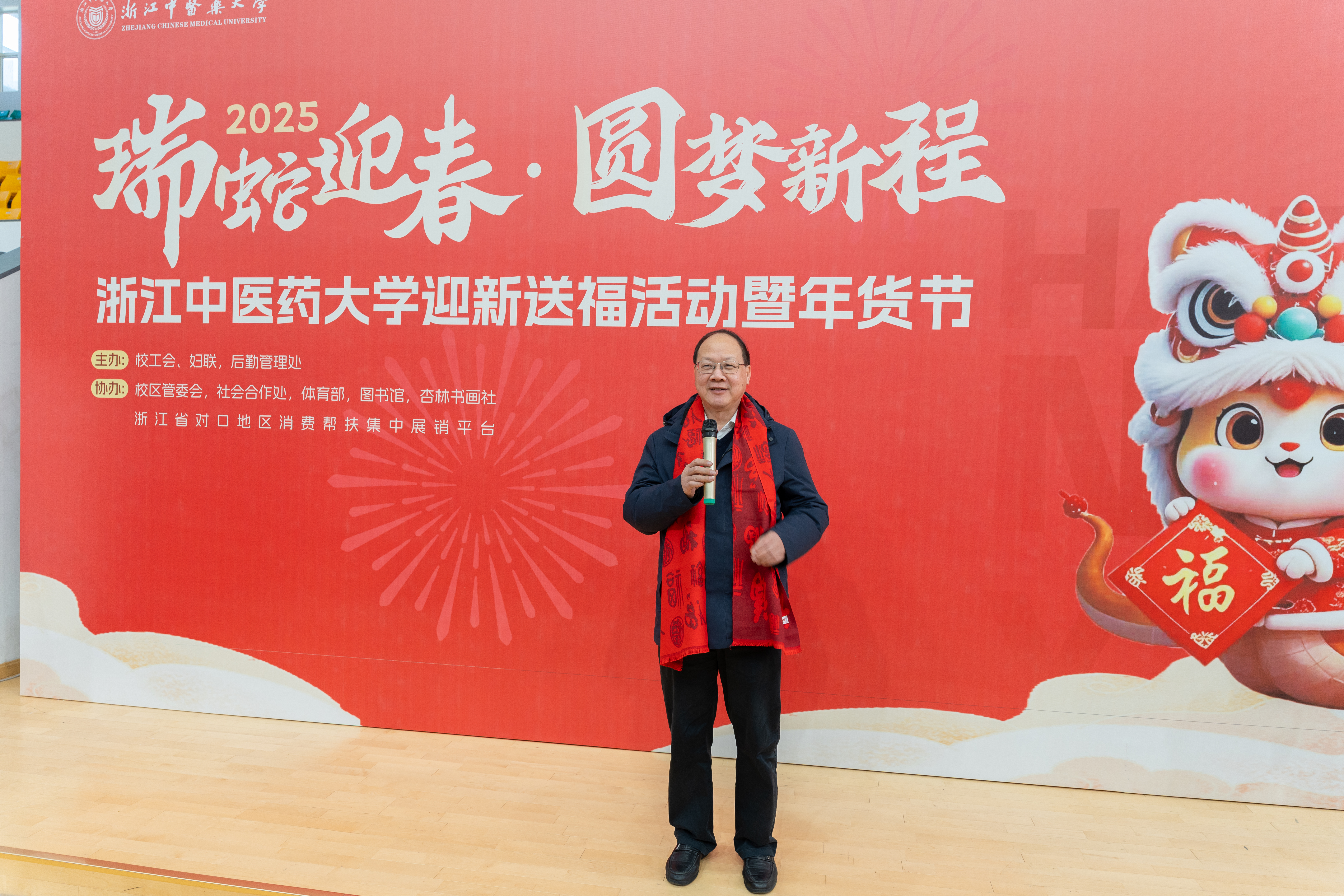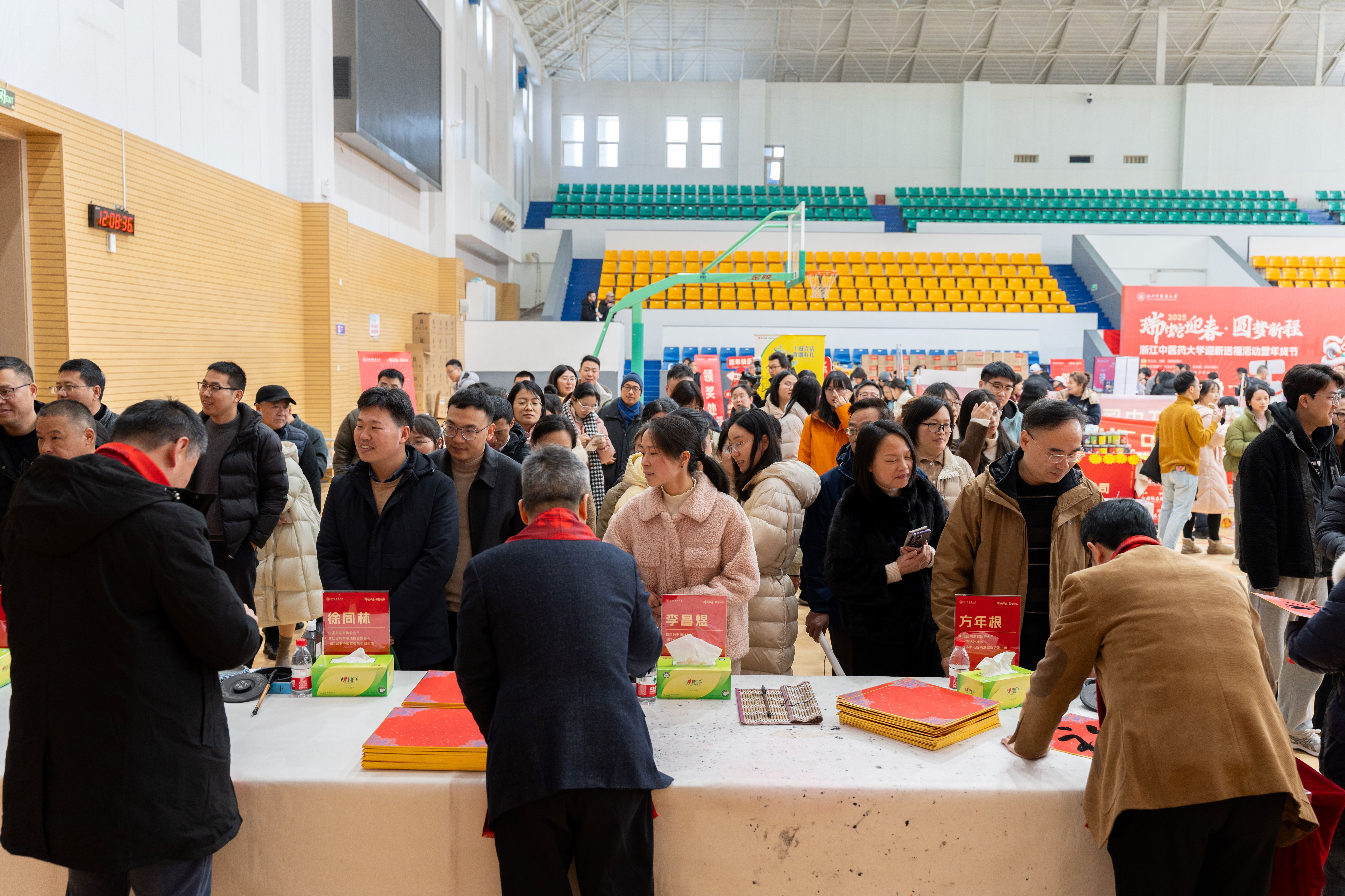 祥龙摆尾辞旧去,金蛇昂首迎新来。在2025年到来之际,为向长期以来辛勤奉献在各个岗位的广大教职工表示感谢, 营造和谐共建、欢乐祥和的节日氛围,1月2日至3日,学校举办了“瑞蛇迎春,圆梦新程”迎新送福活动暨年货节。本次活动由校工会、妇联,后勤管理处主办;校区管委会,社会合作处,图书馆,体育部,杏林书画社,浙江省对口地区消费帮扶集中展销平台等协办。校党委书记黄文秀,校长陈忠,副校长温成平,纪委书记、监察专员王轶,副校长罗伟明,副校长黄建波,党委副书记黄爱军,党委组织员汤书明出席活动。此次活动吸引了1000余名教职工的热情参与,现场热闹非凡,大家在欢声笑语中开启充满希望的新一年。