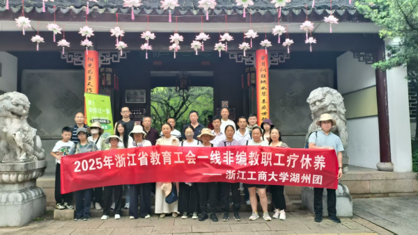 盛夏七月,碧波荡漾。由浙江省教育工会主办、浙江工商大学工会精心策划的“商途有约 湖光同行” 2025年一线非编教职工疗休养活动于7月14日至16日在湖州启幕,来自后勤、安保、校医院等部门的20位优秀一线非编教职工代表参加了活动。
