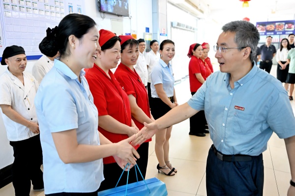 王永贵一行还来到流水苑食堂,详细了解了暑假期间留校师生的饮食情况,并对坚守岗位的后勤员工表示感谢,鼓励大家要继续保持高标准的服务态度和敬业精神,确保暑期在校师生的饮食健康。