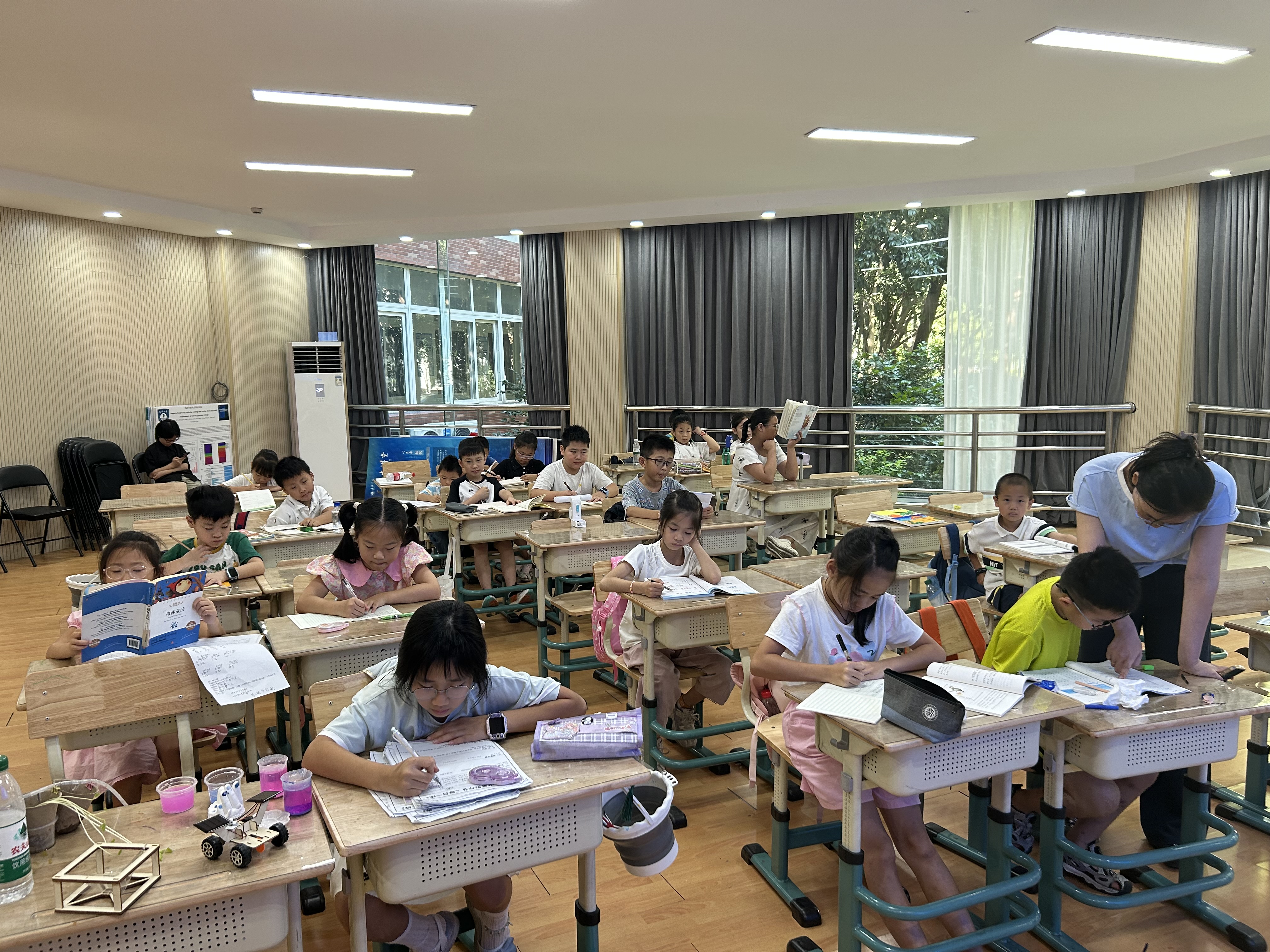 作为学校的民生实事项目,爱心托班已连续开办三年,服务覆盖面与课程质量逐年提升。自去年起,托班便创新构建“双师协同”教学模式:一方面邀请嘉兴大学附属实验学校教师团队聚焦文化课辅导,为孩子们答疑解惑、巩固学业;另一方面联合嘉兴大学中小学生研学实践教育基地教师团队,量身设计趣味拓展课程,让假期学习更具深度与活力。