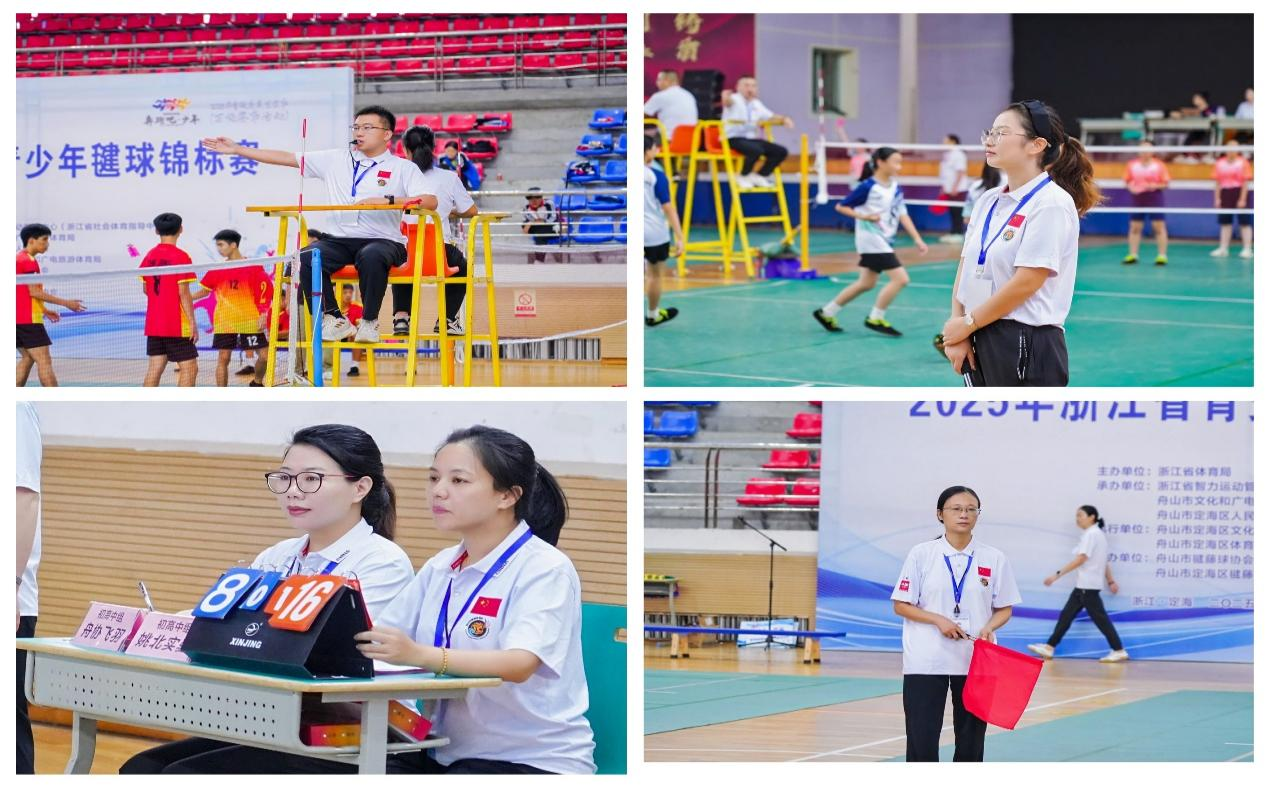 在本次浙江省青少年毽球锦标赛中,我校教工毽球协会的裁判员们分布于各个竞赛项目与组别。他们秉承着严肃、认真、公正、准确的态度,精准把握比赛规则,熟练运用裁判法,密切配合赛事组织方,圆满完成了包括网毽赛、计数赛在内的多项执裁任务。面对紧张激烈的比赛节奏和年轻运动员们多样的技术动作,他们沉着冷静,判断精准,其专业的执裁表现赢得了组委会、各参赛队及现场观众的一致认可。