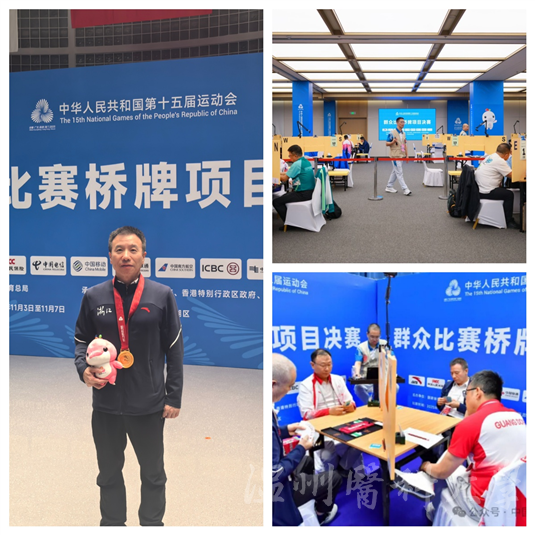 11月7日,第十五届全国运动会群众比赛桥牌项目决赛在广东深圳圆满收官。作为国内水平最高、规模最大的综合性体育盛会,本届全运会桥牌赛事吸引了全国各省市顶尖队伍等同台竞技。浙江省桥牌队表现抢眼,斩获1金2银的优异成绩,其中温州医科大学检验医学院(生命科学学院)谢克俭老师作为浙江男子团体业余组主力选手,以全场最高出场率、个人成绩排名第一的硬核表现,助力队伍成功获得男子团体赛(业余组)第一名,这也是全运会开设桥牌项目以来,浙江桥牌斩获的历史首枚金牌。