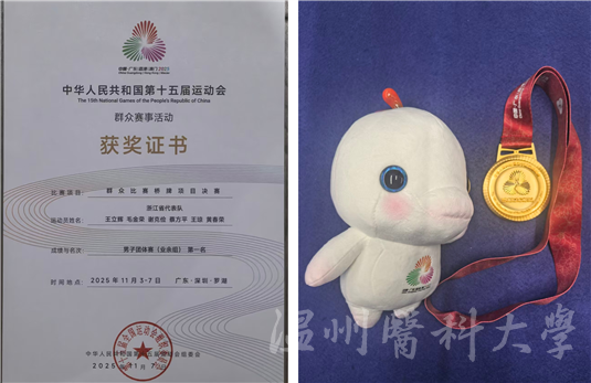 “三十多年的热爱,换来今天的高光时刻!这不仅是我个人的荣誉,更是为浙江、为温州、为学校争得的荣誉。”首次征战全运会便站上最高领奖台,谢克俭老师难掩激动。据悉,谢老师与桥牌的缘分始于三十余年前,这份热爱始终未曾褪色。如今,他身兼温州市桥牌协会副主席兼秘书长、温州医科大学教职工桥牌协会会长等职,在桥牌领域深耕不辍,并于2023年以队长兼主力队员的身份带领温州队首次夺得全国智力运动会桥牌冠军,实现市级队伍在该赛事中的历史性突破。