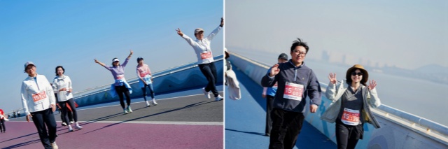 “别看是走路,对体力也是不小的考验,但带来的充盈与快乐是无可替代的。”在江风的吹拂中,来自浙江理工大学的常海良老师身着马拉松服快步迈进。“友谊第一,成绩第二。”谈起参加这场活动的想法,他笑着说道。