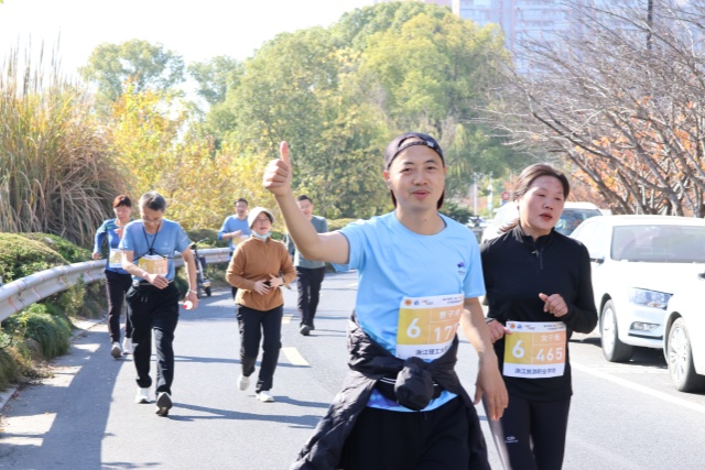 本届活动中,不仅参加单位和运动员数量较首届有所增加,保障服务更是全面升级,浙江工商大学专门配置了8架无人机全程护航,实时捕捉活动情况与运动员的状态。浙江工商大学红马甲志愿者随时指引矿泉水、能量棒、热姜茶在沿路设置的补给点随时供应还有全程提供参照的浙江工商大学“兔子配速员”让每一位选手都连连称赞。