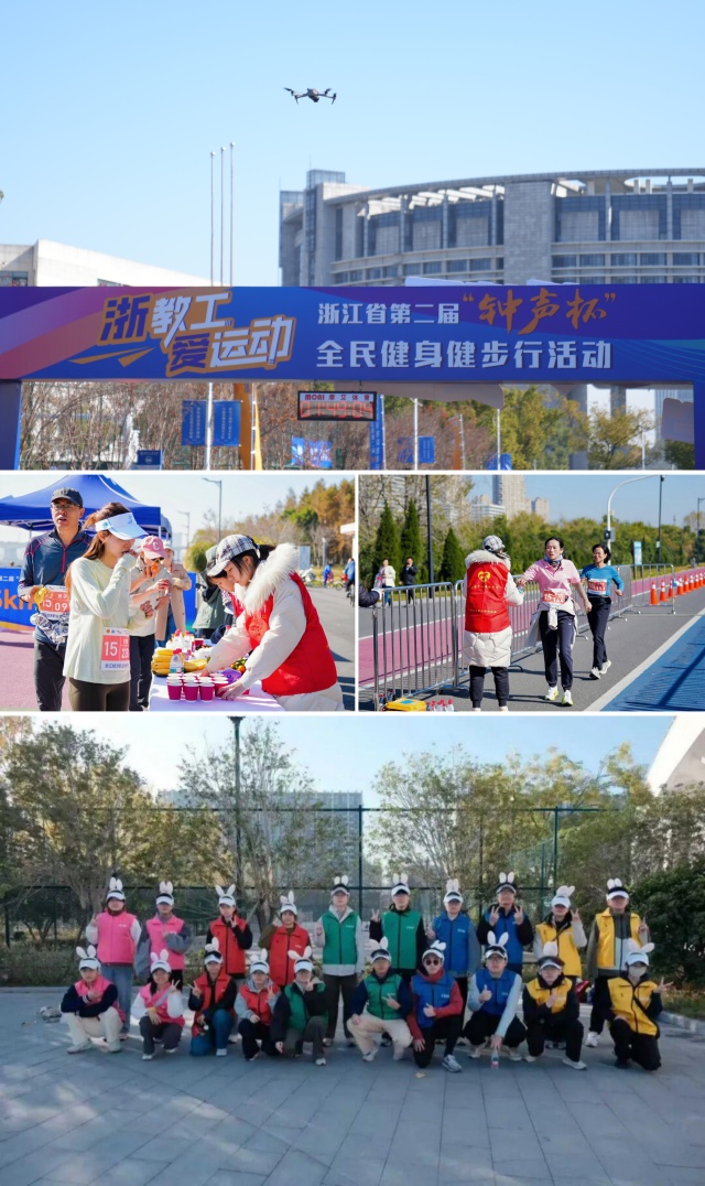 迎江听潮,昂扬健步。今天,浙江省第二届“钟声杯”全民健身健步行活动在浙江工商大学下沙校区鸣枪开走。来自全省36所高校等单位近千名教职工齐聚浙商大,同赴钱塘之约,共享健步旅程。