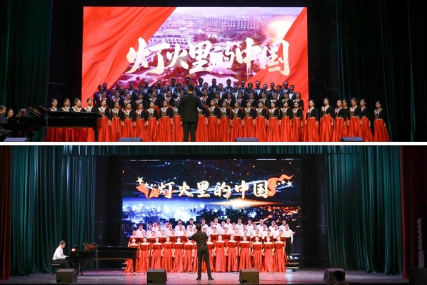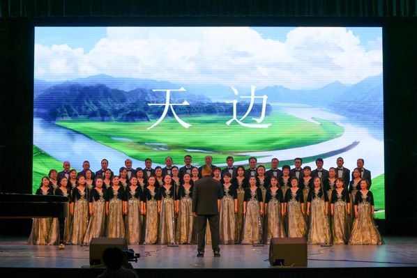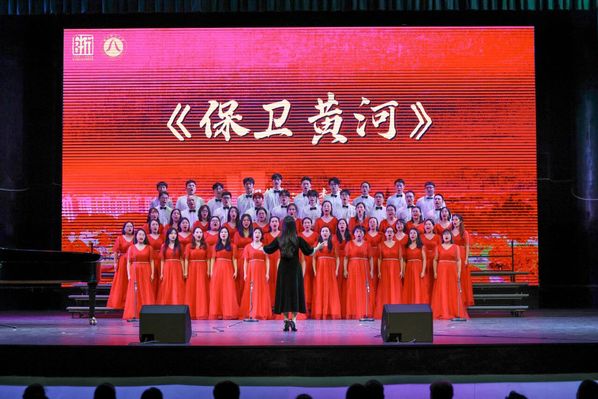 伴随外语学院《保卫黄河》的雄壮歌声,合唱比赛拉开帷幕。物电学院、终身学院两支队伍献上《长江之歌》,经管学院齐唱《看山看水看中国》,描绘祖国河山,赞颂盛世华章。