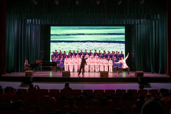 体育学院身着蒙古族特有服饰演绎《蒙古人》,由学校退休教职工组成的银耀浙师合唱团作为特邀团队,以一首《天边》传递对母校七十载岁月的深情,合唱表演落幕之际,艺术学院特别献上表演曲目《天路》,表达了浙师人砥砺前行、勇攀高峰的不懈追求。