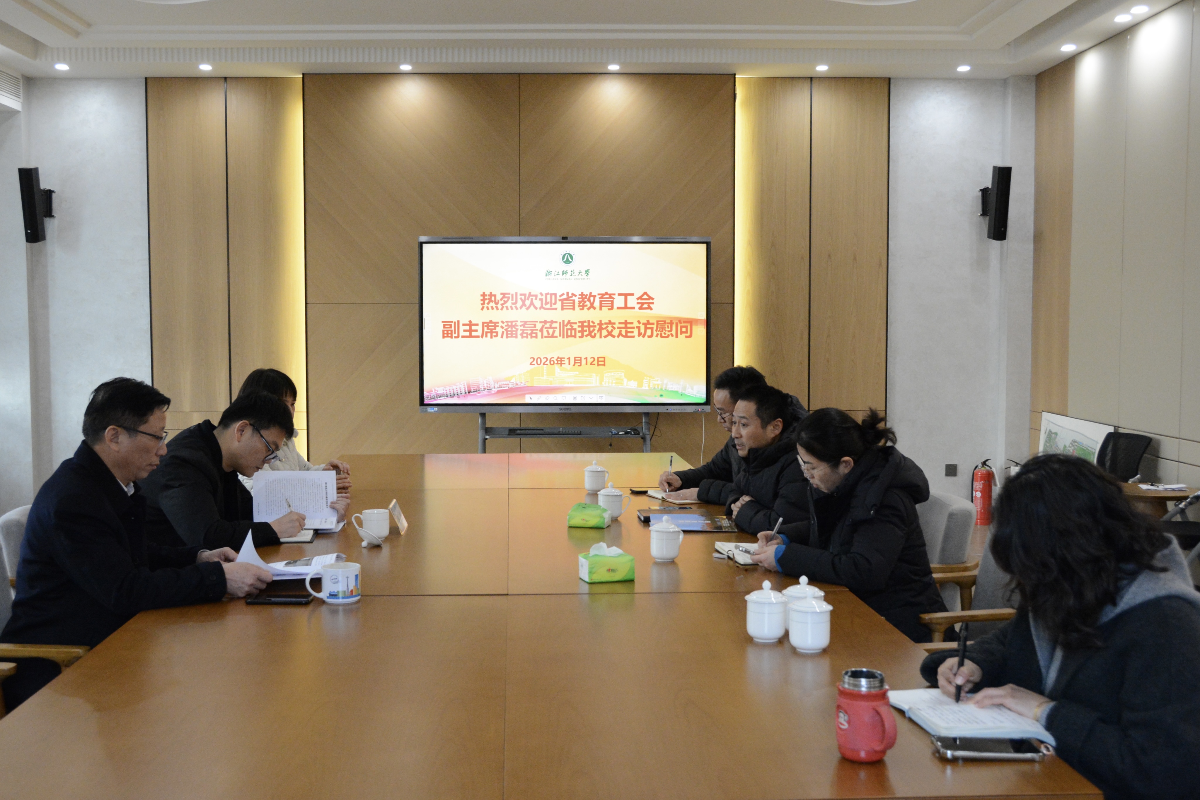 慰问结束后,潘磊听取了省教育工会2025年助力创新浙江建设助推高校高质量发展和高质量发展建设共同富裕示范区的两个项目进展情况。终身教育学院党委书记祝伟华介绍了《“山海聚力·续航计划”——新时代中小学工会主席赋能工程》项目实施情况。该项目旨在探索工会工作新路径,提升山区海岛县中小学工会主席履职能力,进一步强化工会维权服务与学校民主管理功能。