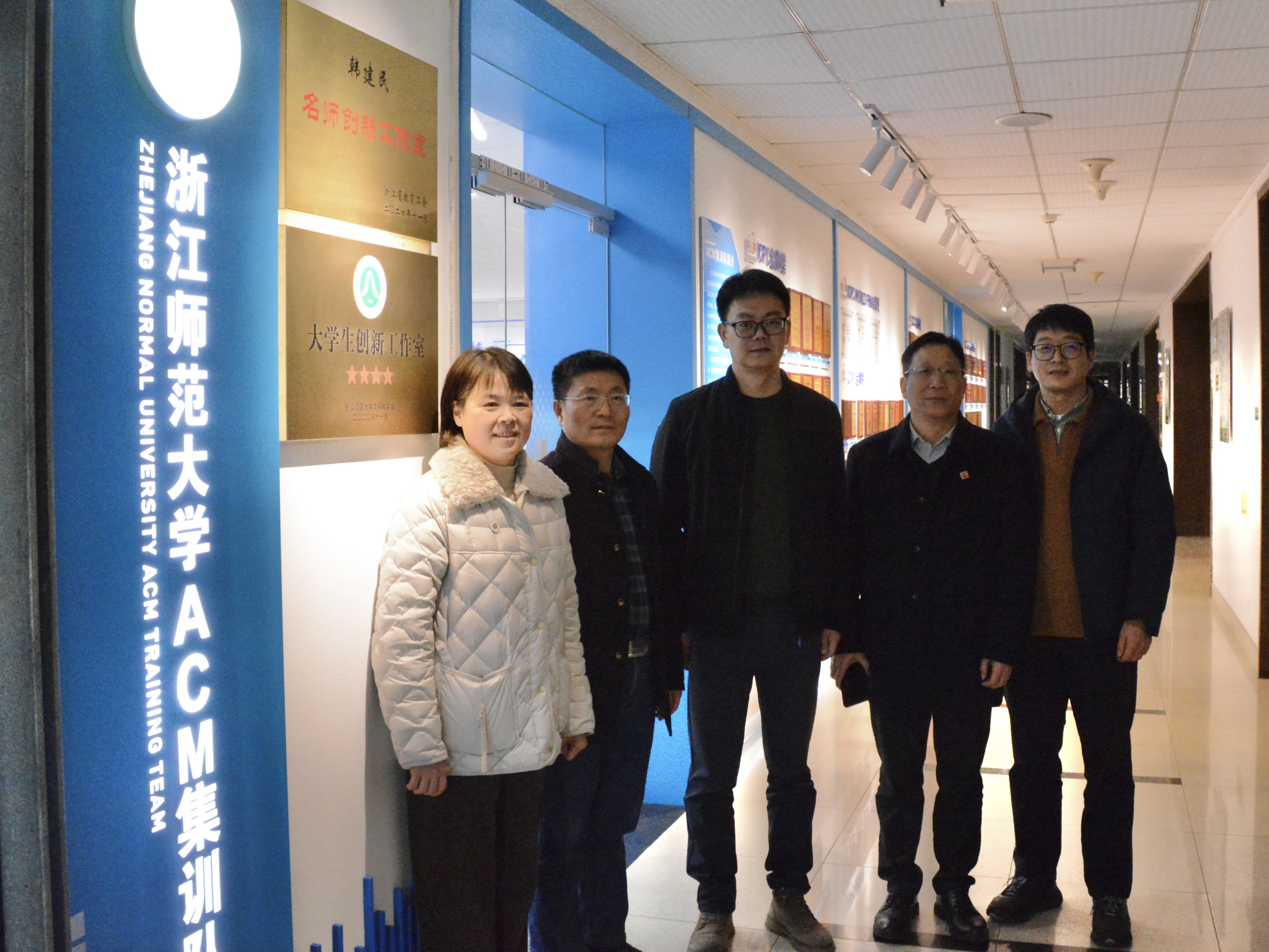 随后,潘磊在计算机学院党委书记郦炬、省“赛-学-研”名师创新工作室负责人韩建民的陪同下,参观了我校ACM集训队工作室,并听取了《工联智创:工会引领名师助力——智能算法产教融合育人工程》项目汇报。该项目依托工会组织优势和省“赛-学-研”名师创新工作室资源,探索协同育人新模式,致力于提升人才培养质量,服务浙江共同富裕示范区建设。
