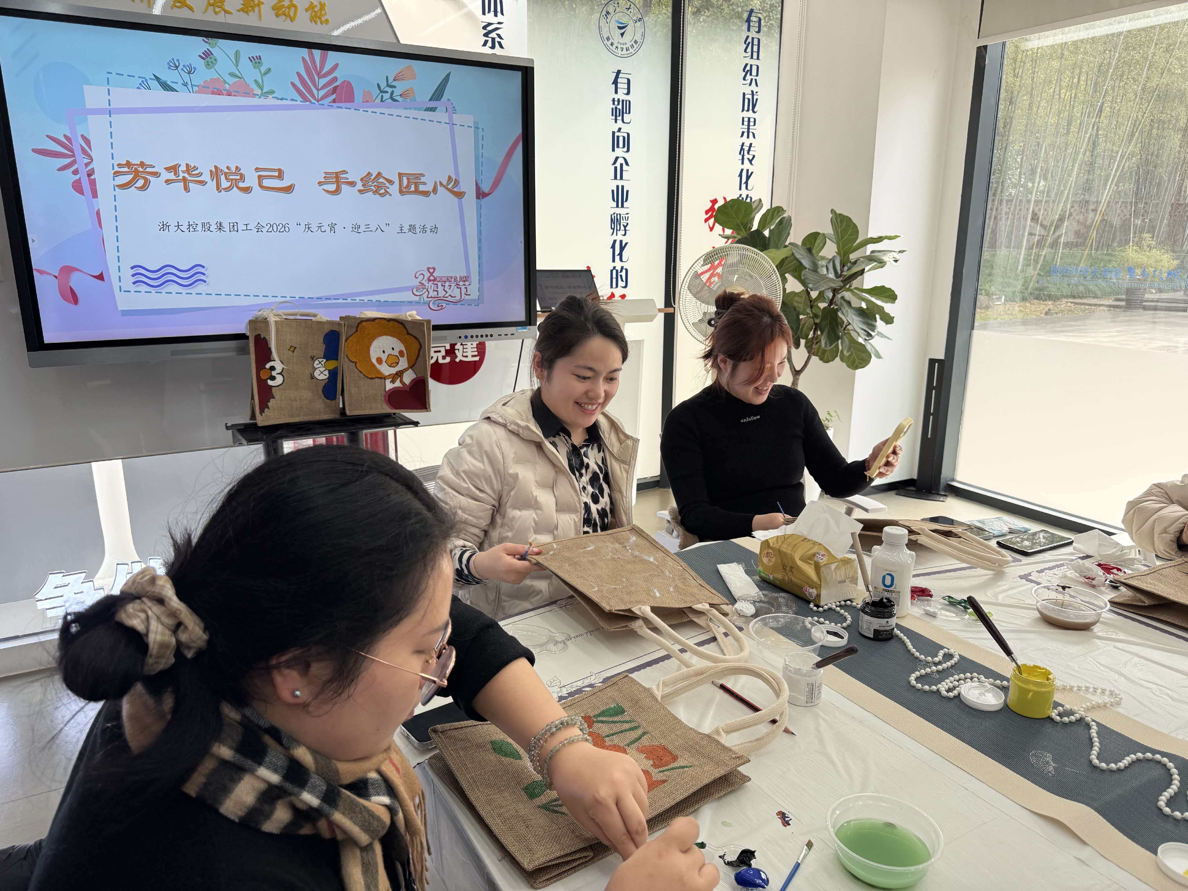 手绘麻布包活动现场,色彩与创意碰撞出别样火花。女职工们手持画笔,发挥奇思妙想,将春日灵感凝于笔尖,在素净的麻布包上勾勒线条、填涂色彩。简约的图案、缤纷的配色,每一个手绘布包都独一无二,既承载着大家的巧思创意,也成为装点日常、彰显个性的专属好物,在动手创作中解锁生活的美好。