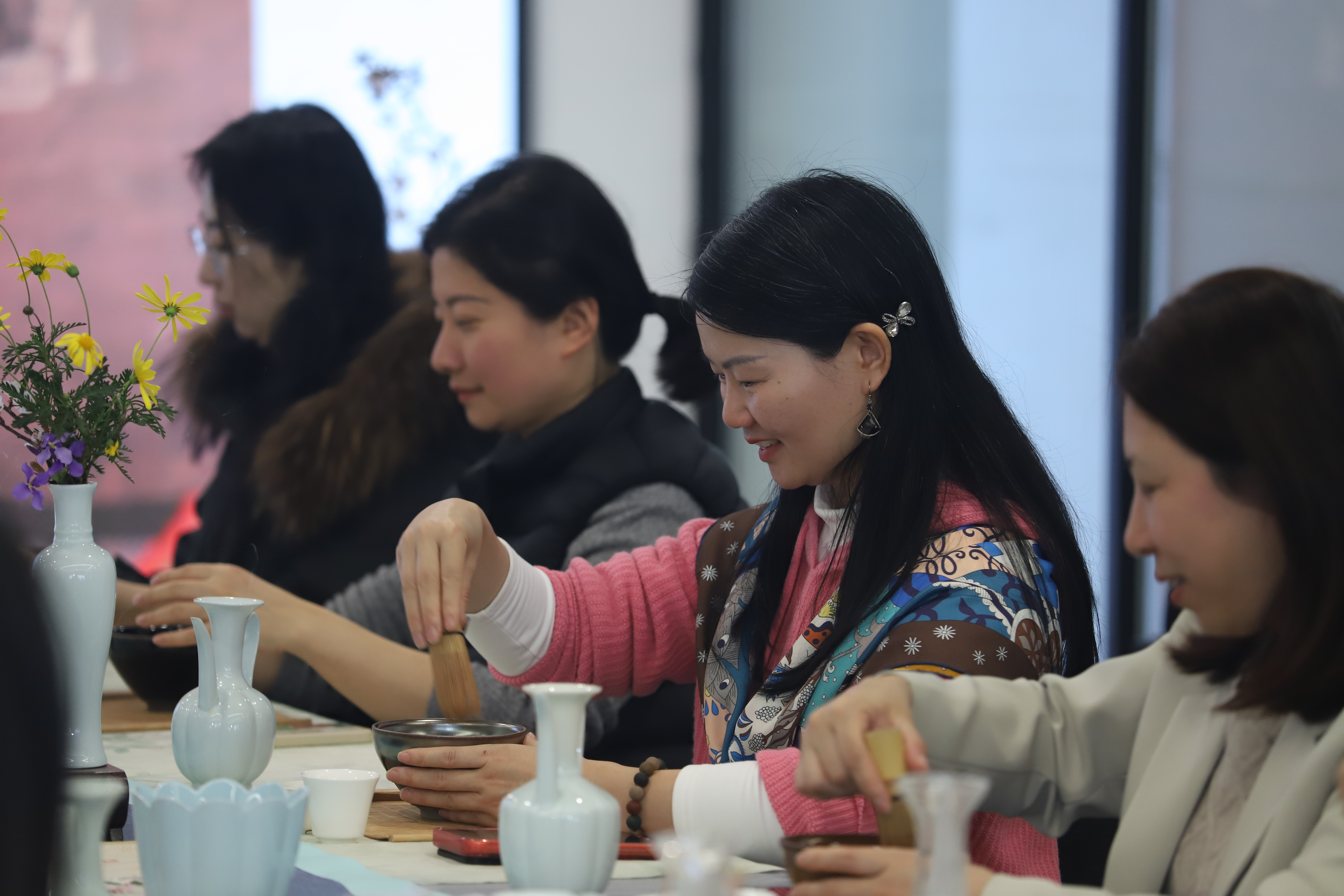 一盏清茗,品味宋韵风华。点茶体验活动中,专业老师细致讲解点茶的历史渊源、技法要领,从炙茶、碾茶、罗茶到调膏、击拂,一步步耐心示范。女职工们凝神静气,手执茶筅轻轻击拂,看着清茶与沸水交融成细腻的茶沫,在一冲一点间感受宋代文人的雅致生活,于慢时光中体会传统茶文化的独特魅力。