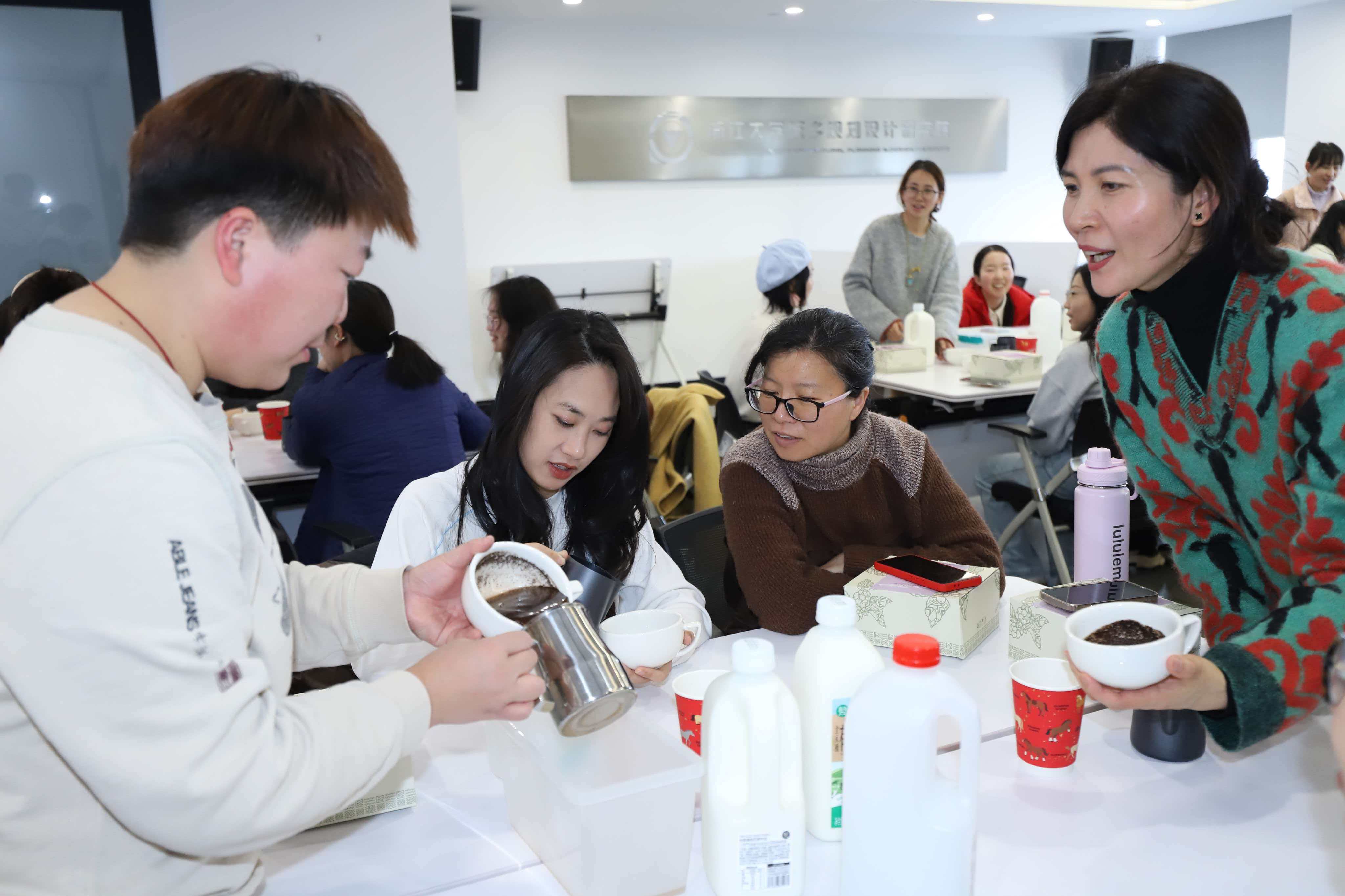 咖啡香溢,匠心勾勒。咖啡拉花体验现场暖意融融,专业技师细致讲解咖啡知识、拉花技巧,女职工们认真学习、亲手实操,从萃取咖啡到奶泡打发,再到拉花成型,在反复尝试中摸索技巧。当灵动的爱心、可爱的树叶等图案在咖啡表面缓缓成型,满满的成就感油然而生。醇厚的咖啡香搭配精致的拉花,让平凡生活多了一份甜蜜与精致。