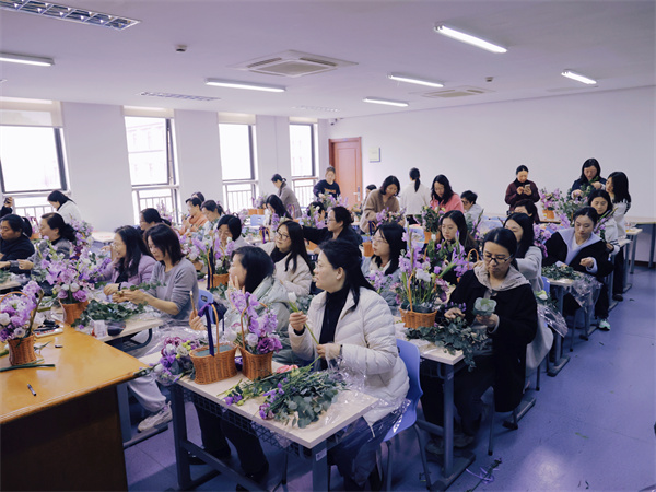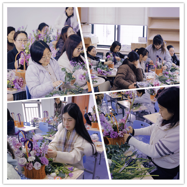 3月20日,百余位女教职工齐聚会场开展“花漾时光艺术插花”活动。活动伊始,女职委主任陈燕华老师代表工会向全体女教职工致以最美好的祝福和最诚挚的问候,希望大家在插花活动中感受芬芳与美好,继而为学校高质量发展贡献更多巾帼力量。活动现场温馨雅致,大家巧手选材、精心搭配,在花香与笑语中创作花艺作品,定格春日美好,体验生活美学。