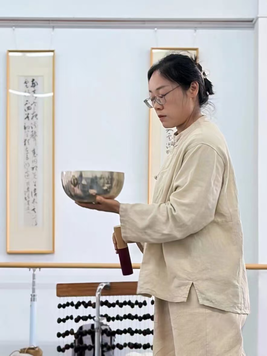 45分钟的“颂钵+自然音声沉浸”体验中,老师们跟随着陆陆老师的引领,在古老的颂钵频率与自然音声的环绕下,放下纷扰。这不仅是一场听觉的享受,更是一次深度的身心重启。在这里,声音成为桥梁,连接内心深处的平和与力量。