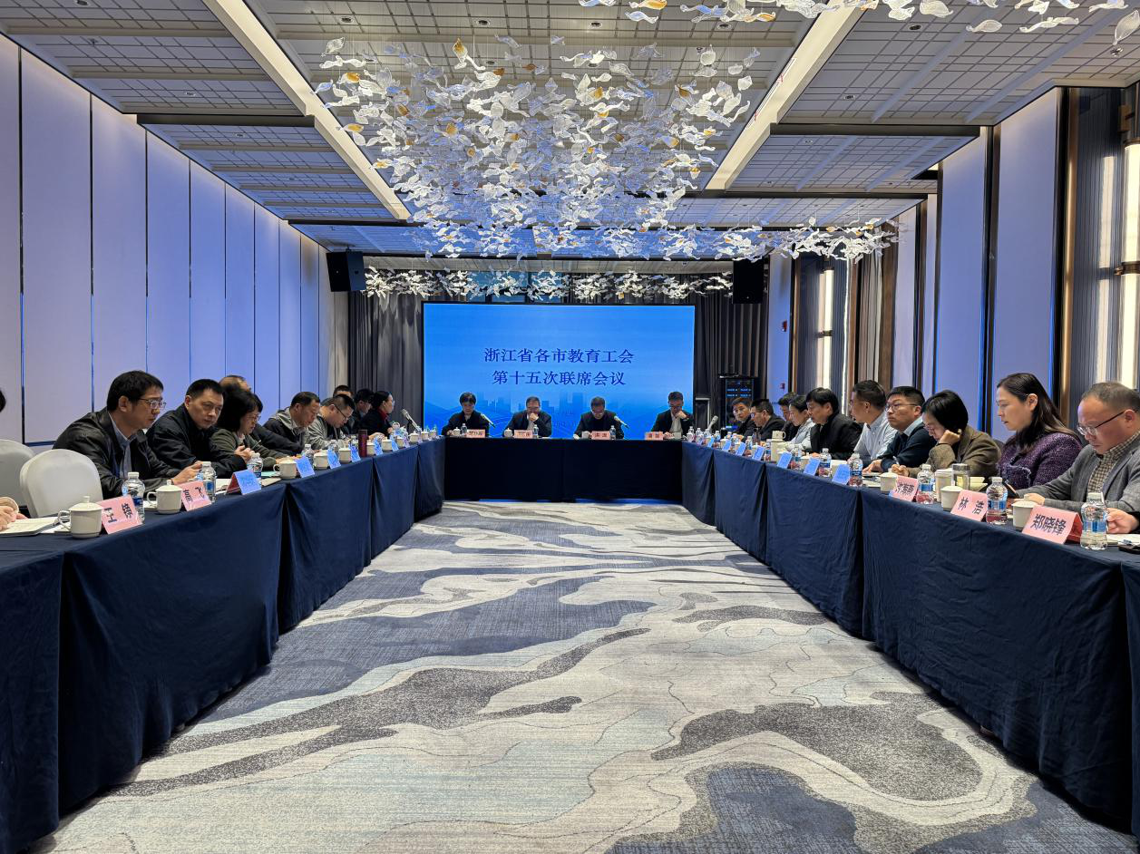 11月25日至26日,浙江省各市教育工会第十五次联席会议在湖州举行。会议由浙江省教育工会主办、湖州市教育工会承办。浙江省总工会二级巡视员、省教育工会主席王玉庆及省教育工会领导,各市教育工会负责人,以及湖州市各区县教育工会和部分高校工会负责人出席会议。省教育工会副主席、经审会主任胡慧霞主持会议,湖州市总工会党组成员、副主席洪流致欢迎辞。