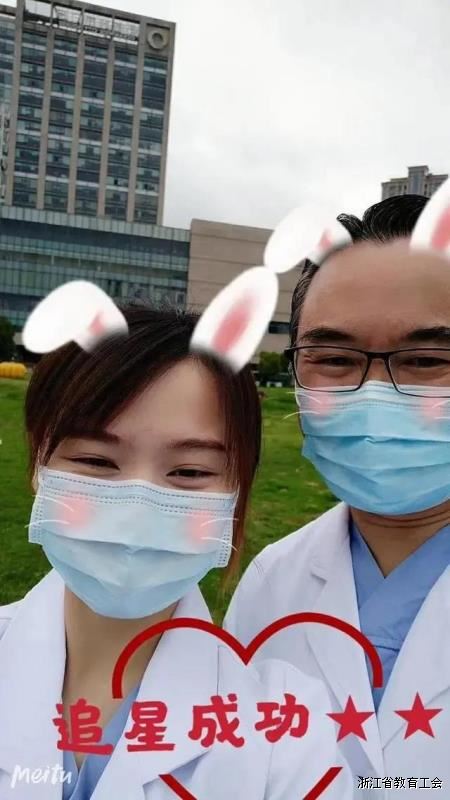 浙大二院护士“最小的娃”余赛婷昨天发了一组朋友圈,称大家都是“过命的交情”啦!她“嘚瑟”地晒出与浙大二院援鄂重症医疗队领队、常务副院长王伟林的照片,激动地说自己“追星成功”,还P上了萌萌的兔耳朵,果然内心还是一个少女啊。