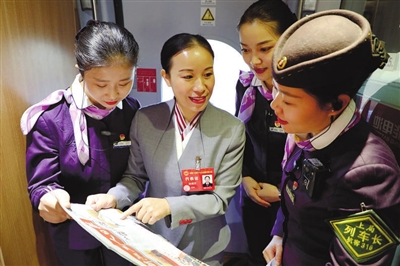 近日,党的十九大代表、全国劳模、中国工会十七大代表、省总工会兼职副主席、中国铁路上海局集团有限公司杭州客运段甬广车队列车长陈美芳在其工作的列车上,向乘务员宣讲中国工会十七大精神。见习记者邹伟锋 摄影报道