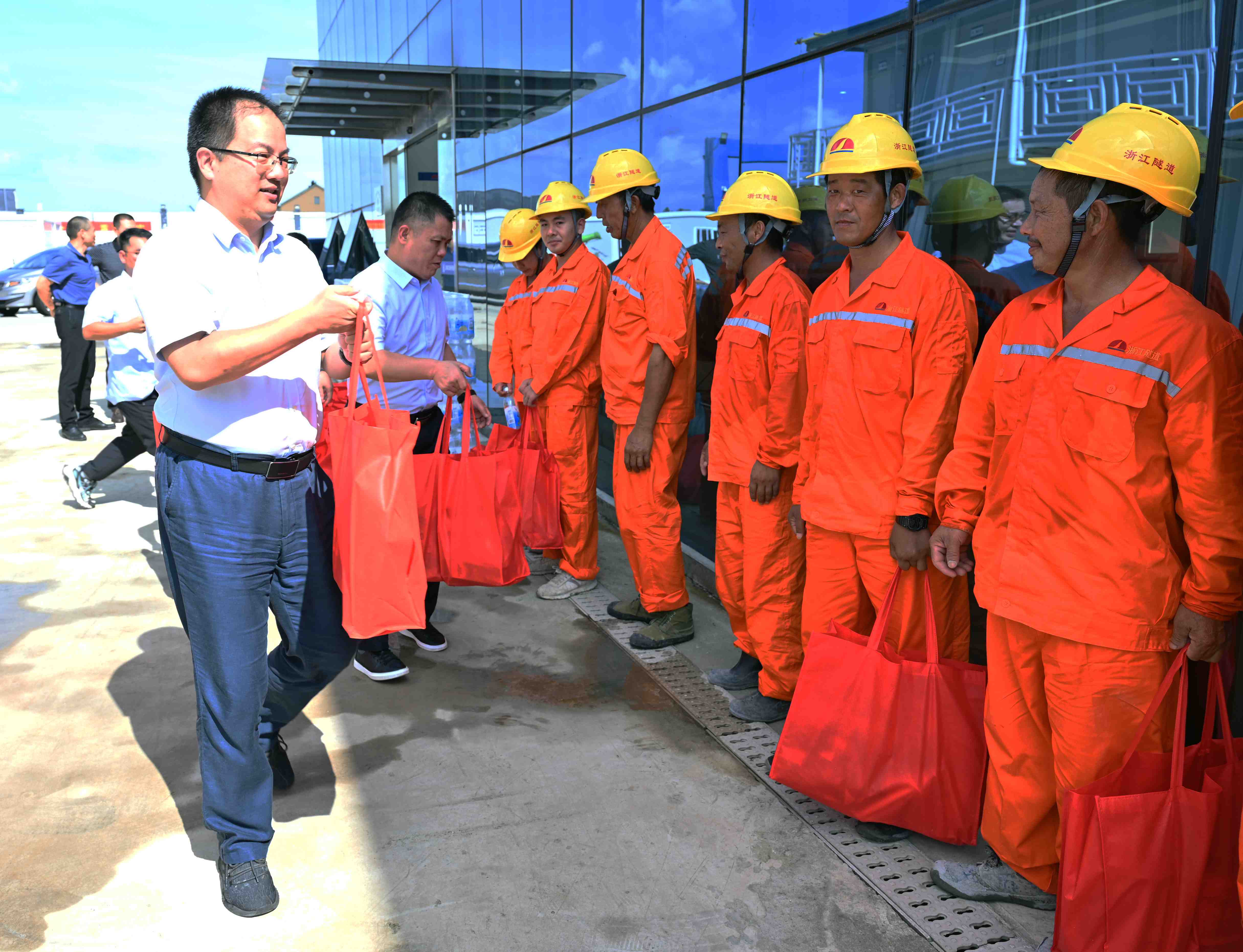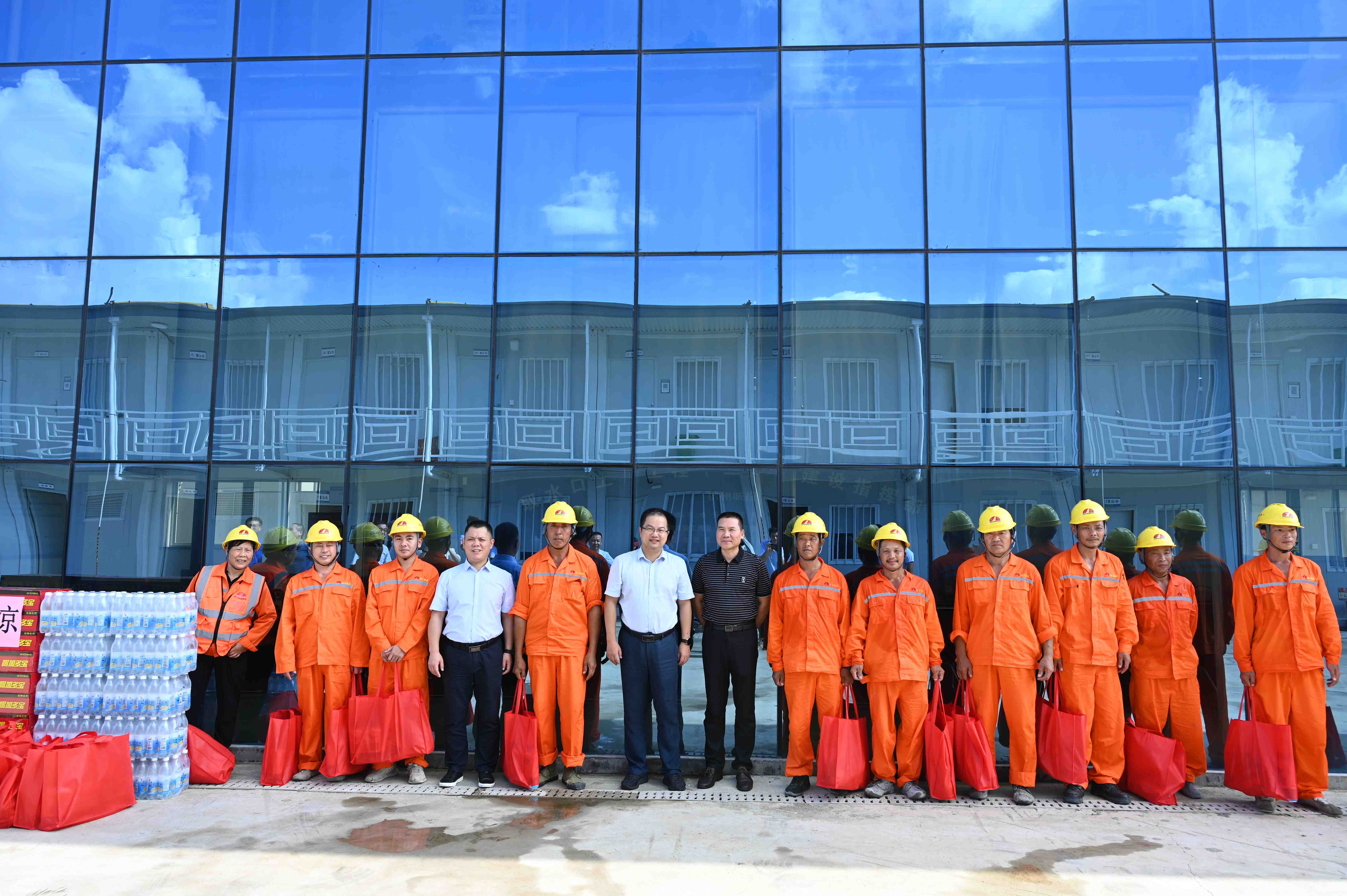 施科一行深入工地一线,参观了项目部的工会活动室、民工学校和爱心驿站,与一线职工亲切交谈,并将一份份“清凉物品”一一送到职工手中,向在高温酷暑下坚守岗位的劳动者们送上慰问和关怀,叮嘱他们做好防暑降温工作,确保身体健康,确保安全生产。